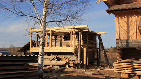 Эта самая деревянная часовня действительно когда-то приплыла. Реставратор-архитектор Александр Матюхин рассказывает об этом слегка нараспев, при этом сам он похож на гусляра или сказителя из былины. Сейчас она стоит на высоком берегу. Вокруг дома — словно декорации из фильма про старую Русь. Часовня, которая приплыла — Часовня — интересная история. В пяти километрах отсюда стоит деревня Забивкино. Туда в 20-е годы ХХ века часовню принесло паводком, — Александр смотрит немного вверх, будто представляя, как это было. Река Онега аккуратно поставила часовню на берег в Забивкине. И там она служила местным жителям еще долгие десятилетия. — В этой часовне базировались, можно сказать, местные староверы-скрытники, — повествует Александр. — Они в Забивкино жили. Староверов на Каргополье было мощное движение. Они в этой часовне реально молились чуть ли не до 80-х годов ХХ века. Александр показывает оформление косяка. — Смотрите: тут "ушки" — это ХVIII век! Так делали косяк под обшивку. Это настоящее народное зодчество. К ХХI веку от "плавающей" часовни осталось немного. Поэтому ее отдали артели реставраторов в Архангело. Те совершенно не планировали заниматься этим маленьким объектом, но поразила легенда, и сам процесс тоже оказался увлекательным. Сейчас часовню буквально склеивают из кусочков. Некоторые фрагменты стен выглядят как мозаика: среди старого темного дерева многочисленные заплатки из нового светлого. Реставраторы поставили задачу сохранить от прежней часовни максимум. — Вот тут все наклеено. Старое бревно, а к нему фрагменты нарощены. Тут было что-то гнилое — вклеили вставочки, — Александр проводит рукой по бревну. — А тут полностью новое. Было старое бревно, была полочка, мы ее полностью переклеили. Это такая технология — круглый угол вытесан и скобелем (специальным ножом — прим. ТАСС) заглажен. Мы тоже так делаем — тешем и скобелем заглаживаем. Мы стараемся повторить технологию. Используем, конечно, электро- и бензоинструменты, но все следы убираем. Что остается? Топор, скобель. Небеса в заброшенном храме Как рассказывает совсем еще молодой архитектор, получилось вроде как само собой, что часовней занялись. Вообще, он впервые приехал в Архангело в 2010 году с коллегами — делать обмеры двух старых церквей для проекта реставрации. Старинных храмов здесь два: Архангела Михаила 1715 года постройки и Сретенская церковь, более позднего времени. У Михайловской — уникальная кровля, характерная только для Поонежья, а под кровлей на потолке сохранились расписные небеса. Яркие, желто-красно-голубые, с ликами, они выглядят празднично и почти невероятно в заброшенном храме. Проект реставрации тогда сделали, но оказалось, что стоить она будет баснословно дорого. — Местные жители захотели восстанавливать храмы, и стали они искать, что-то узнавать, им сказали — надо 35 миллионов, — рассказывает Александр Матюхин. — Они, конечно, испугались. Но проект реставрации есть, и какие-то работы планируется провести уже этим летом. Тем временем артель занимается часовенкой и строит новый храм на собранные пожертвования. Храм Пахомия Кенского — в честь местного каргопольского святого — уже почти готов. Службы там идут. Храм теплый, построен, что называется, без единого гвоздя. Старые церкви консервируют до лучших времен. В конце июля вместе с жителями 
