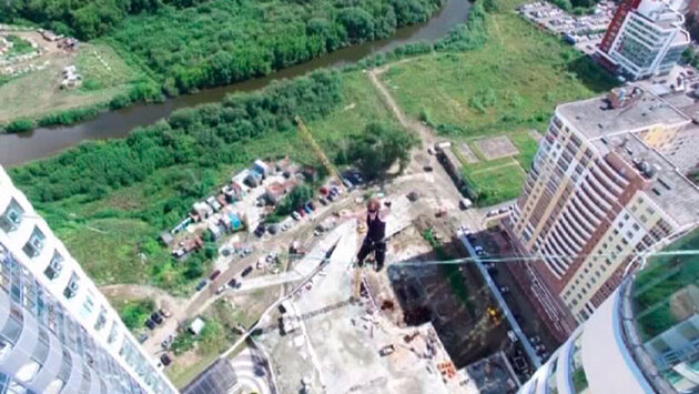 Канатоходец показал головокружительный трюк на высоте 37 этажей в Екатеринбурге