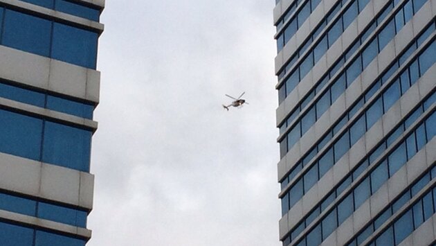 Жители Астаны заметили зависший над городом вертолет