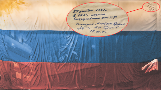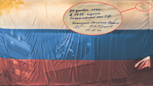 Сегодня в России отмечается День Государственного флага РФ. 22 августа 1991 года члены Верховного Совета РСФСР на утреннем заседании приняли постановление «Об официальном признании и использовании Национального флага РСФСР». Но на главном флагштоке страны — над Сенатским дворцом Кремля — некоторое время развевался флаг СССР. Впервые флаг России был поднят на этом флагштоке 25 декабря 1991 года. А сейчас он находится… в Екатеринбурге. Увидеть его может любой желающий в экспозиции Музея первого Президента России в Ельцин Центре. — Флаг поднимали зимним вечером. День был будний, и народу на Красной площади было немного, — рассказывает «ОГ» Дмитрий Пушмин, руководитель архива Президентского центра Б.Н. Ельцина. — Никакой торжественной обстановки. Сняли красный флаг СССР, водрузили флаг России. На самом флаге комендант Кремля Михаил Иванович Барсуков позже сделал надпись: «25 декабря 1991 г. в 19:45 поднят Государственный флаг РФ»… В этот же день около 19:00 Михаил Горбачёв подписал указ «О сложении Президентом СССР полномочий Верховного Главнокомандующего Вооружёнными Силами СССР и упразднении Совета обороны при Президенте СССР», а в 19:10 выступил в прямом эфире центрального телевидения с заявлением об отставке. — К тому моменту уже были подписаны Беловежские соглашения (8 декабря 1991-го) и была принята Алма-Атинская декларация (21 декабря 1991-го), всем было очевидно, что СССР перестал существовать. Заявление Горбачёва было чистой формальностью. И символично, что этим же вечером место красного флага занял триколор, — продолжает Дмитрий Пушмин. Этот флаг висел над Кремлём зимние месяцы, затем он был заменён новым, поскольку пришёл в негодность. Носители государственной символики, которые пришли в негодность, принято уничтожать — непублично и проявляя к этим знакам должное уважение... — Но этот был первым. И его сохранили — похоже, это была личная инициатива Михаила Ивановича Барсукова, который в ту пору занимал должность коменданта Московского Кремля. Когда мы делали музей, он передал нам флаг через Владимира Николаевича Шевченко — шефа службы протокола при Горбачёве и Ельцине и члена правления Ельцин Центра. Это было в 2013 году. Но флагу требовалась реставрация… Флаг номер… два? Водружение первого флага на главный флагшток страны действительно прошло без шума. В «Московском комсомольце» от 28 декабря 91-го об этом событии — лишь небольшая заметка: «На церемонии спуска флага СССР с серпом и молотом присутствовали только рабочие. А некто Кузьмин и Архипкин — служащие хозяйственной службы — проделали процедуру за несколько минут». Вот только озаглавлена заметка странно — «Флаг номер два»… — Дело в том, что был ещё один флаг, который подняли над зданием Дома Советов РСФСР 22 августа 1991 года, сразу после подписания исторического постановления Верховного совета РСФСР. Этот флаг также сохранился и находится… в личной коллекции Виктора Николаевича Ярошенко, который в начале 1990-х годов занимал пост министра внешнеэкономических связей РСФСР. Дело в том, что когда Верховный Совет постановил, что трёхцветному флагу быть, нужно было его сразу же водрузить над зданием как символ победы над ГКЧП. Но где же его взять? В руках у демонстрантов на улицах Москвы были десятки триколоров — от небольших флажков до огромного 50-метрового флага, фотографи