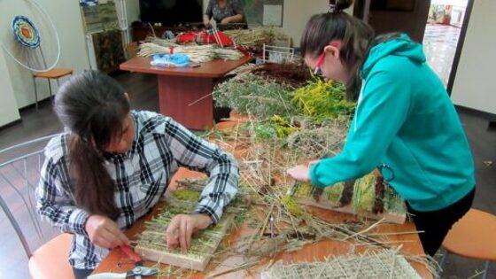 В национальном парке «Орловское полесье» развивается новое направление — мастер-классы по различным видам творчества. В этот раз занятие посвятили плетению панно из трав. Местные школьницы собирали на лугу разные травы и цветы, потом сушили их. Подготовив растения, приступили и к творчеству. Мастерицы хотели использовать в своей композиции все травы, среди которых каждая красива по-своему. Девочки кропотливо закладывали травку за травкой, добавляя цветные нити, чтобы они гармонично соединялись с природными материалами. Панно из трав теперь будут украшать стены нового информационного центра и радовать посетителей запахом летнего разнотравья Орловского полесья. Сотрудники парка привлекают внимание подрастающего поколения к окружающей природе, учат любить ее и беречь малую Родину. (Татьяна Горбунова, фото автора). НОВОСТИ ПО ТЕМЕ: Вадим Потомский показал послу Армении Орловское Полесье В национальном парке «Орловское полесье» обнаружили поляну редких цветов «Орловское полесье» примет участие в конкурсе снимков с фотоловушек