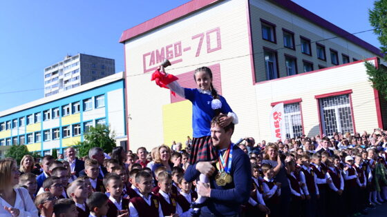 Мероприятие было посвящено 870-летию Москвы и Чемпионату мира по футболу – 2018. Погода выдалась солнечной и по-настоящему праздничной. Праздник начался с выноса знамени под гимн школы. Право поднять флаг было предоставлено мастеру спорта международного класса, чемпионке мира среди юниоров и победительнице Гран-При по фигурному катанию среди юниоров, учащейся 9 «Е» класса Алине Загитовой. После чего торжественная линейка была официально открыта. В центр выбежали учащиеся школы, которые исполнили танцевальный номер и песню, посвященную началу нового учебного года и учителям. В центр выкатился двухметровый мяч, вокруг которого собрались талисманы «Самбо-70» и первоклассники, которые вместе со своими учителями устроили под заводную музыку настоящий флешмоб, зарядив своей энергией всех присутствующих. После окончания танца дети вручили почетным гостям памятные подарки – мячи с надписью «Самбо-70». По доброй традиции первоклассникам было предоставлено слово, они прочитали стихотворение о школе «Самбо-70», не забыв отметить и свой любимый город. Право дать первый школьный звонок в новом учебном году было представлено заслуженному мастеру спорта, двукратному чемпиону мира по самбо и трехкратному чемпиону Европы, выпускнику школы «Самбо-70» Вячеславу Михайлину и ученице 1 «В» класса Олесе Зайцевой. Провели первоклассников в их классы учащиеся 11-х классов, будущие выпускники школы «Самбо-70», которые, казалось бы, сами недавно также стояли в первых рядах. Газета "Наш Теплый Стан" Новости района Теплый Стан Объединенная редакция ЮЗАО "Москва За Калужской заставой"