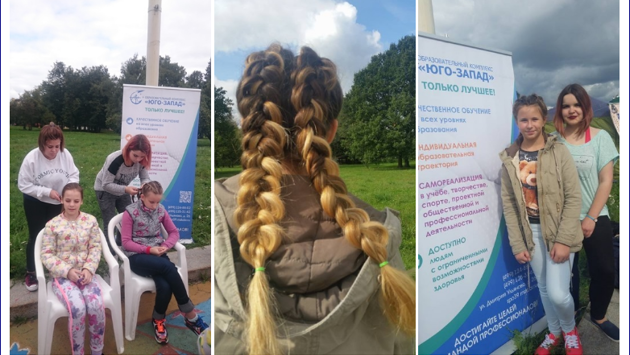 Студенты отделения «Парикмахерское искусство» образовательной площадки «Котловка» Карева Татьяна, Овчинникова Алена, Зубарева Елизавета и Краутер Кристина провели мастер-классы во Дворце пионеров на Воробьевых горах. Об этом сообщает газета "Наш район-Котловка". «От нашего Образовательного комплекса мы представляли мастер-класс «Ажурное плетение». Было очень много желающих научиться плести косы. Мы думаем, что нам удалось создать праздничное настроение и взрослым, и детям», - рассказали учащиеся площадки "Котловка" Овчинникова Алена и Карева Татьяна.