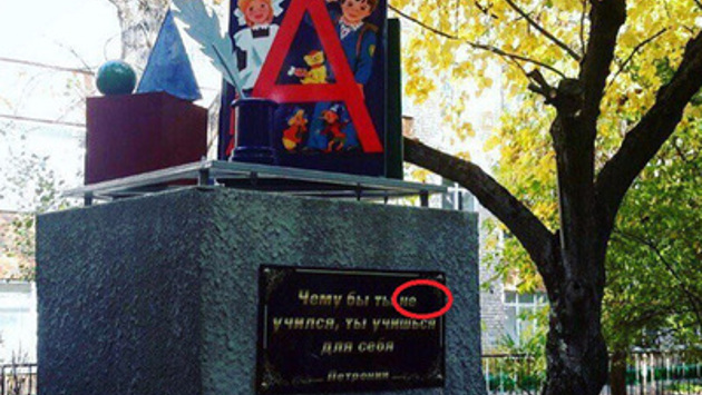 В городе Буденновск Ставропольского края установили памятник букварю с цитатой, в которой обнаружили грамматическую ошибку. Об этом сообщает портал NewsTracker. Авторы скульптуры написали на табличке высказывание древнеримского писателя Петрония Арбитра: «Чему бы ты ни учился, ты учишься для себя». В цитате вместо частицы «ни» поставили «не». Замглавы администрации города Марина Буримова пообещала исправить ошибку в ближайшее время. «Мы с вами прекрасно понимаем, что на таких памятниках ошибок не должно быть. Чему же мы учим детей?» — отметила она. В сентябре в Москве был открыт памятник оружейнику Михаилу Калашникову. На барельефе монумента обнаружили изображение чертежа немецкой винтовки StG 44. Автор работы Салават Щербаков заявил, что оно попало в композицию по ошибке.