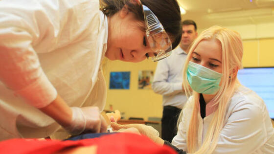 В столичной школе № 627 состоялся мастер-класс по обучению правилам оказания первой помощи. Вместе со старшеклассниками основные приемы спасения пострадавших отработала корреспондент «ВМ». Медицинский класс сегодня — это настоящая лаборатория. Здесь и роботы-тренажеры для отработки навыков сердечно-легочной реанимации, остановки артериального кровотечения, и аптечки первой помощи, и манекены для выполнения простейших манипуляций. Ученица-наставница Даша Новикова уже прошла подготовительный этап обучения и теперь охотно делится знаниями со своими одноклассниками. — Уже давно мечтаю быть врачом, кажется, это мое призвание, — говорит Даша, расправляя бинты для перевязки. — И все это — мой первый шаг на пути к заветной цели. Звание наставника по оказанию первой помощи Даша получила еще в октябре, когда воспитанники 72 городских школ, имеющих медицинский класс, прошли специальную подготовку. А теперь под их руководством все желающие могут получить необходимые навыки. — В столичных школах сегодня уже есть больше пятисот учеников-наставников, — рассказывает заместитель директора Городского методического центра Николай Антонов. — После подготовки школьники смогут принять участие в городских соревнованиях «Первая помощь», которые пройдут в столице в будущем году. Главное правило — соблюдение мер безопасности. — При неграмотном оказании первой помощи пострадавшим можете стать и вы, — напутствует ребят учительинструктор Георгий Козлов. Волосы собраны, одежда прикрыта белыми халатами, на руках — медицинские перчатки. Под руководством Даши ребята — большинство впервые в жизни — пробуют наложить повязку на рану и запоминают замысловатые ходы бинта, используемые при перевязки головы. София Вейн, шаг за шагом повторяя действия наставницы, справляется с заданием. — Знать, как помочь оказавшемуся в беде другу или просто прохожему, необходимо каждому, — утверждает еще один участник мастер-класса Даниил Головин, только что закончив отрабатывать приемы сердечно-легочной реанимации. — От чрезвычайных ситуаций никто из нас не застрахован. Я сам, правда, свою жизнь хочу связать с психологией. Но почему бы не освоить и некоторые приемы оказания первой помощи? Еще одна группа ребят, внимательно слушая наставницу Валерию Батуеву, на роботетренажере изучает места расположения главных артерий человеческого организма, чтобы в случае серьезного кровотечения правильно выполнить пальцевое прижатие артерии, а затем наложить жгут. Здесь понадобится не только осторожность, но и немалая сила и ловкость. И все же десятикласснице Марии Юртаевой удается справиться с этим нелегким заданием. — Главное — не растеряться в реальной жизни, если вдруг доведется оказывать первую помощь, — резюмирует девушка, гордо демонстрируя результат работы. Неотъемлемая часть оказания первой помощи — вызов скорой. Ребятам объясняют: правильность и своевременность оказания первой помощи позволит не только избежать осложнений в ходе дальнейшего лечения, но и сохранить жизнь. — Необходимо понимать разницу между помощью «первой» и «медицинской», — добавляет Николай Антонов, наблюдая за работой учеников. — Медицинскую помощь могут оказать только профессионалы. Но в случае, например, клинической смерти или комы нет времени на ожидание медицинских рабо