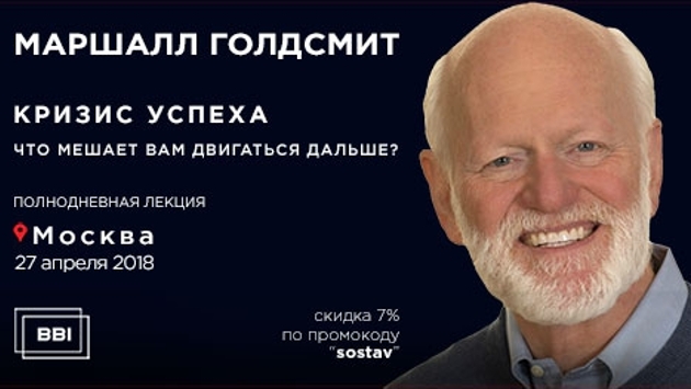 В апреле 2018 Маршалл Голдсмит приедет в Москву, чтобы поделиться своим опытом с руководителями российских компаний. Он проведет полнодневную лекцию «Кризис успеха. Что мешает вам двигаться дальше?». Маршалл расскажет о том, какие поведенческие модели приводят к тому, что человек начинает «буксовать» на вершине своего успеха и даст практические рекомендации, которые помогут значительно повысить темпы своего развития. Маршалл Голдсмит — личный наставник CEO Ford, Hasbro и Goldman Sachs. Он специализируется на развитии лидерства и коучинге руководящего состава организаций. Маршалл входит в число самых влиятельных мыслителей мира в сфере менеджмента по версии Thinkers50 и является лучшим executive-коучем Америки по версии Inc. Он написал порядка 30 книг, в том числе «Прыгни выше головы!», которая входит в список любимых книг Германа Грефа. Узнать больше Скидка 7% по промокоду «sostav»