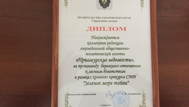 «Приамурские ведомости» стали дипломантом конкурса «Зелёное море тайги»