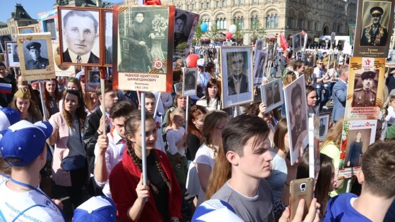 Всего по главной площади страны прошли более миллиона москвичей. В марше памяти принял участие и Президенты России Владимир Путин. Глава государства нес в руках портрет отца-фронтовика. «На улицы Москвы вышли больше миллиона человек. Чистое небо, солнце, счастливые дети. Таким, наверное, видели День Победы наши близкие с фотографий. Сегодня они с нами», - сказал мэр Москвы Сергей Собянин, также участвовавший в грандиозном шествии. Сергей Собянин вышел на Красную площадь с портретом своего деда, на табличке значились и именами четырех сыновей деда – участников войны, двое из которых с полей сражений не вернулись. «Все, кто пришел сегодня на Красную площадь, сделали это по зову сердца», - отметил Сергей Семенович. Колонны «Бессмертного полка», словно полноводная народная река, стремились к центру притяжения – главной площади страны. Люди подобно Знамени Победы поднимали высоко над головой портреты своих родственников-фронтовиков, воскрешая героев, даруя им вечную память, утверждая на виду у всего мира истинную победу жизни над смертью. Нет в России семьи такой, где не памятен был свой герой – война коснулась каждого и потому так плотен людской поток, так тесны ряды участников акции, так одинаково торжественны и праздничны их лица и громогласно летящее в высокое небо мая единое, непобедимое «Ура!». Среди тех, кто в День Победы вышел на центральную улицу страны были и жители запада Москвы. У каждого своя история, свои герои, своя память, свои боль и быль... Елена Долгополова, Тропарево-Никулино: - Оба моих деда: Дмитрий Егорович Меркушкин и Андрей Иванович Долгополов – ветераны труда, оба ковали Победу в тылу. Работали на одном заводе им. Калинина. Дневали и ночевали в цехах предприятия, обеспечивая поставки комплектующих для танков и «Катюш». Солдаты трудового фронта, герои тыла.Дарья Киселева, Раменки: - Мой прадед Карпов Александр Петрович на фронт ушел в 36 лет. Служил интендантом, заведовал делами снабжения и войскового хозяйства. Был ранен. Человек очень скромный, он о своих боевых заслугах рассказывать не любил, считал их чем-то вполне естественным, даже будничным. Обыкновенный герой, каких было много. Егор Пегушин, Проспект Вернадского: - Мой прадед - Александр Филиппович Пегушин прошел три войны: гражданскую, финскую и Великую Отечественную. Бился с фашистами до победного конца – дошел до Берлина! Имел боевые награды. Валерий Семенов, Солнцево: - Мой дед Новоселов Петр Алексеевич был призван на фронт в первые дни войны, служил рядовым в пехоте. Защищал Москву, участвовал в боях под Наро – Фоминском, где был серьезно ранен. В этом году акция продлилась дольше обычного из-за рекордного числа участников