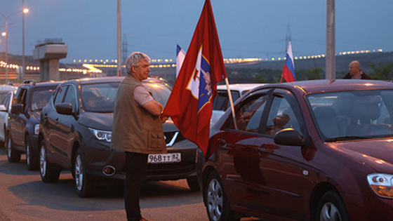 Желающие проехать по мосту начали собираться затемно, и к трем часам ночи у развязки, в которую упирается главная улица Тамани, стояли несколько десятков машин и множество байкеров. Участникам первого проезда раздали правила движения по мосту. Машины украшены флагами России, Крыма и Севастополя и воздушными шарами. Со стороны Кубани ветераны Тамани перед началом движения устроили импровизированный концерт — они пели песни прямо на трассе, где водители ожидали открытия моста. До сих пор Крым с материковой частью России связывала только паромная переправа. Ее работа зависит от погоды, летом там возникают очереди. Торжественное открытие Крымского моста состоялось накануне. Президент России Владимир Путин, управляя "КамАЗом" во главе автомобильной колонны, первым проехал с кубанской стороны в Керчь. "Это история" Движение стартовало сначала с кубанского берега, чуть позже — с крымского, чтобы встречные потоки встретились под судоходной аркой. Строители моста стояли на железнодорожном переходе, идущем параллельно автодорожной части, снимали движение по мосту на сотовые телефоны и махали руками водителям. Те сигналили в ответ. Валентина с коллегой ехали по Крымскому мосту самыми первыми со стороны Краснодарского края. По словам девушки, они очень взволнованны. "Под аркой буду загадывать, чтобы почаще были такие запоминающиеся на всю жизнь, легендарные моменты", — сказала она. "Смотрели, сравнивали впечатления с поездкой президента. Когда он ехал на арку, складывалось впечатление, что это высоко, будто Уральские горы переходишь. А мы когда ехали — это плавно все было. И очень красиво! Мы из Сибири, из Кемеровской области, работаем в Анапе. Сейчас в Керчь к коллегам заедем и поедем назад. Раньше в Крыму не была, первый раз в Крым по мосту приехали!" — рассказала журналистам Татьяна. Ветеран Великой Отечественной войны Александр Лубенцов рассказал ТАСС, что поражен масштабами строительства. "Смотрю — сколько же здесь труда, сколько денег вложено! Поражаюсь всему и горжусь Россией, что страна это сделала... Это все поразительно, как в сказке", — сказал собеседник агентства. В числе первых водителей, которые проехали по мосту из Крыма, был и гражданин США Бари. Он из Нью-Йорка, сейчас на пенсии, женат на россиянке. Бари рассказал журналистам, что американских санкций не боится, а мост его вдохновляет. "Это история. Теперь мне будет удобно ездить в Краснодар, раньше я пользовался паромом", — сказал он. Специально чтобы проехать по мосту в числе первых, прибыли байкеры из "Ночных волков". "Для нас мост — это не только инженерное сооружение из металла и бетона, это еще и мост в будущее, в русскую мечту. Поэтому мы хотели в этом событии тоже поучаствовать", — рассказал журналистам лидер мотоклуба Александр Залдостанов (Хирург). Тамань как пригород Керчи В памятке для отправляющихся по Крымскому мосту советуют обязательно сделать селфи с памятником Михаилу Лермонтову в станице Тамани. Здесь поэт столкнулся с контрабандистами и описал этот случай в "Герое нашего времени". Кому-то кажется, что бронзовый Лермонтов смотрит на крымский берег, кому-то — что в море, на белеющий одинокий парус. Специалист Таманского музейного комплекса Наталья Клименко рассказывает, что во времена Лермонтова именно из Керчи незаконно возили товары в таманский форт. "