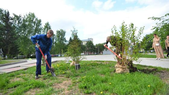 Первые хвойно-лиственные композиции высадили на площади Чайковского