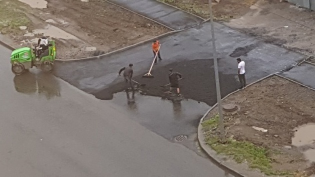 Челябинские дорожники снова попались на укладке асфальта под дождем
