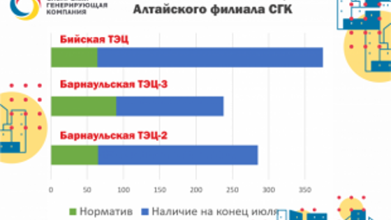 Сибирская генерирующая компания формирует запасы топлива на Барнаульских ТЭЦ-2 и ТЭЦ-3 и Бийской ТЭЦ к предстоящему отопительному периоду. На угольных складах станций уже сейчас хранится топливо в количестве, превышающем установленный Минэнерго РФ норматив, в 3,4 раза, 1,6 раза и 4,8 раза соответственно. По состоянию на конец июля, на угольном складе Барнаульской ТЭЦ-2 находится 220 тысяч тонн каменного угля марки Д с Минусинского угольного разреза Республики Хакассия. Норматив, установленный для станции Министерством энергетики РФ, составляет 65 тысяч тонн. В среднем в сутки в июле станция для выработки электроэнергии и тепла на подогрев горячей воды для потребителей сжигала около 1 тыс. тонн топлива. Таким образом, при аналогичном режиме работы, имеющегося сейчас запаса топлива хватило бы на почти 8 месяцев или 240 суток беспрерывной работы. Однако до отопительного сезона остается не так много времени, и с похолоданием расход топлива будет постепенно нарастать. На Барнаульской ТЭЦ-3 запасы угля также превышают нормативные. Сейчас на складе станции хранится 148 тысяч тонн угля при нормативе в 90 тысяч тонн. Станция работает на буром угле Бородинского разреза. ТЭЦ-3 в течение июля сжигала в сутки в среднем 3,7 тыс. тонн топлива. Если станция продолжит работать в таком же режиме, то сформированного запаса хватит на 40 суток. Больше всего угля хранится на угольном складе Бийской ТЭЦ – 311 тысяч тонн. Норматив для станции установлен в объеме 64 тысячи тонн. В июле в котлах станции за сутки сжигали в среднем 2,1 тыс. тонн угля. Формирование запасов топлива на Южной тепловой станции Рубцовска начнется после 20 августа. Сейчас эта работа осложнена тем, что подъездные железнодорожные пути к станции, по которым приходят вагоны с углем, находятся на ремонте. Их собственник обязуется завершить все работы к указанной дате, и поставки топлива будут возобновлены. Сейчас на складе станции находится 15,7 тонн угля. Этого хватит для стабильной работы станции в режиме горячего водоснабжения, тем более что с 6 по 19 августа намечен плановый останов ЮТС. Отметим, для таких объектов как ЮТС нормативный запас топлива устанавливает Министерство строительства, транспорта, жилищно-коммунального хозяйства Алтайского края. Неснижаемый остаток топлива для станции составляет 2,2 тысячи тонн. - Поставки топлива на станции продолжаются. Их график составлен таким образом, чтобы обеспечить стабильную работу предприятий при любых погодных условиях, при этом располагаемый запас угля не должен опускаться ниже нормативного, - говорит директор Алтайского филиала СГК Игорь Лузанов. – Сейчас основной упор мы сделаем на ТЭЦ-3, так как нагрузка по выработке электроэнергии на станции выше, и, соответственно, угля на ее производство требуется больше.