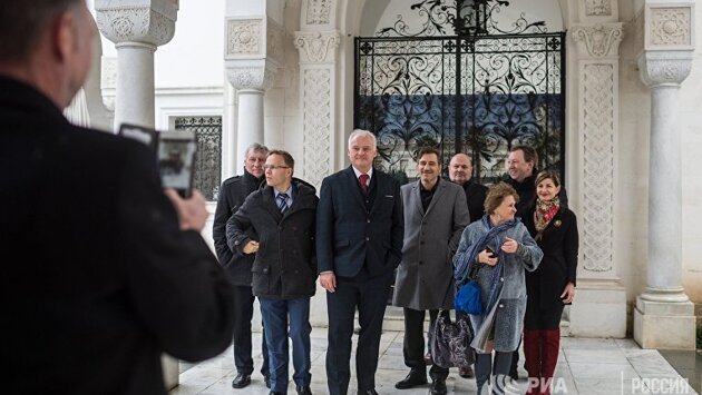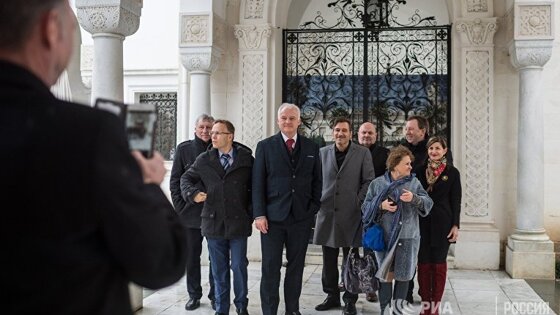 Практически замок — так выглядят винные погреба «Массандры», помпезное здание из натурального камня, в нескольких километрах от Ялты на Южном берегу Крыма. В погребах за искусно выполненными решетками хранятся винные бутылки, покрытые слоем пыли. Вероятно, они не покидали погреб уже более 100 лет. Об этом в апреле 2016 году думали и политики АдГ Маркус Претцель (Marcus Pretzell) и Маркус Фронмайер (Markus Frohnmaier). Оба смотрят на фотографии, где они изображены перед красивой дверью в погреб, на их лицах улыбка. Претцель, являвшийся на тот момент депутатом Европарламента, почетный гость в Крыму. Он приглашен на ежегодный экономический форум в Ялте. В конце концов, не каждый день на черноморский полуостров, стремительно поглощенный Россией после переворота на Украине в 2014 году, приезжает евродепутат. На международной арене действия России считаются нарушением международного права, для страны это означает еще один шаг в сторону изоляции. Во внутренней политике это, напротив, большой успех президента Владимира Путина — для многих россиян это было «возвращение на Родину» украинского Крыма. Так, все здесь имеет символический характер. Фронмайер и Претцель знают, что их поездка — провокация. Прежде всего, для Украины, для которой Крым все еще является украинским. Но и для правительства ФРГ, которое сообщило, что оно принципиально критически относится к подобным поездкам. Так считают и некоторые представители АдГ. Претцель, между тем покинувший АдГ, сумел растопить лед своим приездом. С того момента как партия прошлой осенью прошла в Бундестаг, как минимум 16 депутатов из Бундестага или ландтагов, сотрудников и функционеров посетило полуостров. Крым, Куба АдГ — место политической тоски, каким однажды был карибский остров для социалистов? Международный экономический форум в Ялте, который посетили Претцель и Фронмайер, был основан после аннексии в 2015 году и призван стимулировать развитие экономики Крыма — вопреки санкциям ЕС и США. Претцель заявил в ходе форума: «Я решительно против любых санкций против Крыма и Российской Федерации». В отличие от «сомнений западных правительств», у него нет таковых относительно легитимности присоединения Крыма к России. И Гуннар Линдеманн (Gunnar Lindemann), депутат из Берлина, посетил в феврале вместе с депутатами АдГ из Берлина, Баден-Вюртемберга и Северного Рейн-Вестфалии Крым со схожей миссией: «Целью было обсуждение возможностей для немецких компаний завязать деловые отношения с компаниями в Крыму», — говорит Линдеманн. В апреле этого года было также запланировано посещение Экономического форума в Ялте, в этот раз отправились депутаты Бундестага Штефан Койтер (Stefan Keuter), Вальдемар Гердт (Waldemar Herdt), Робби Шлунд (Robby Schlund) и Маркус Фронмайер. Фронмайер сказал тогда: «Торговля объединяет людей и помогает преодолевать конфликты». Для Штефана Майстера (Stefan Meister) из Германского общества внешней политики причины этих поездок очевидны: "Для АдГ внешнеполитические темы не являются особо профильными. Тема России для нее одна из немногих, где она, по крайней мере, пытается что-то делать«. Он не считает, что посещение таких форумов, которые скорее представляют собой «имитацию экономического развития», имеет эффект — без согласия на уровне ЕС и согласования с США. «Это скорее псевдополитика, когда пытаются выстроить мнимую альт