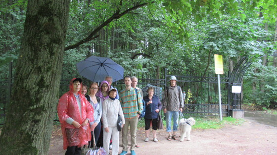 21 августа группа краеведов отправилась по намеченному маршруту чтобы осмотреть несколько артефактов. Они направились к усадьбе сельца Маркова (XVII в.), отмеченного в писцовых книгах ещё в 1619 г. Это сельцо еще в 1873 г. приобрёл московский 2-й гильдии купец Алексей Иванович Васильков, через 6 лет купивший и село Зюзино. С тех пор за лесами сельца Маркова закрепилось название – «Зюзинский лес». До недавних пор здесь находился ныне ликвидированный кордон Битцевского парка. Фундамент усадебного дома выступает из земли по всему периметру. следующим артефактом, который осмотрели зюзинцы, стал курганный комплекс Зюзино-5 (XII-XIII вв.), который состоял из 4 насыпей. Ныне сохранились 2 целых насыпи и следы 2 раскопанных на снос курганов. Гладков Дмитрий Игоревич, работавший на кордоне несколько лет, показал обнаруженный им фундамент усадебного дома, выступающий из земли по всему периметру. Здесь же чаша небольшого сухого средневекового пруда, возможно, относившегося к расположенной по соседству с Марковом пустоши Боташевой, отмеченной ещё в переписи 1627 г. Пруд и окрестные пашни были нанесены на план пустоши при Пройдя по лесным тропам, группа подошла к межевому камню на повороте меж трех дач: сельца Маркова, сельца Кленкова и лесных пустошей Степанковой Дубинкино и Гридиных. От этого камня прошли к следующему камню по межевой просеке сохранившейся межи меж двух последних владений. На обоих камнях отчётливо просматривалась выдавленная цифра 1909 – год проведения межевания Коньково-Гридиной дворцовой лесной дачи, в которую входили вышеназванные лесные пустоши. Чтобы пройти к селищу Зюзино-2, понадобилось перейти через русло Деревлевского ручья. И хотя в намеченном месте не было переправы, дружными усилиями краеведы преодолели ручей. На долгом пологом склоне противоположного берега, пригодном и для жилья, и для пахоты, располагалось селище, судя по найденным предметам, – XV-XVI вв. В окрестности этого селища расположен курганный комплекс Зюзино-6 (XII-XIII вв.) с 9 курганами. Из 9 насыпей сохранились 7 и остатки 2 раскопанных на снос. При раскопках 1966 г. было обнаружено одно погребение без вещей. На одном из девяти курганов группа краеведов краеведы сфотографировались на память. От курганов вышли на древнюю дорогу от Зюзина до Ясенева, рядом с которой к Олимпиаде1980 г. проложили асфальтированную прогулочную тропу. Пройдя вдоль правого берега Деревлёвского ручья с многими отвершками, группа сфотографировалась в его верховье, на постоянной смотровой площадке, где открывается удивительный вид длинного русла с пологими лесистыми берегами. Когда группа вышла к Севастопольскому проспекту, как всегда, к концу маршрута уже не было дождя, пригревало солнце, и все сняли и спрятали плащи и зонтики.