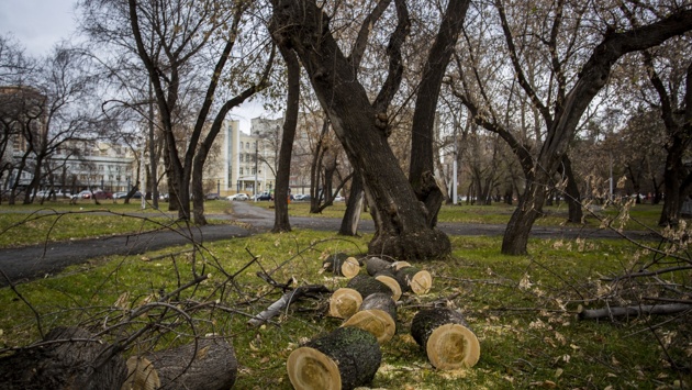 В сквере за оперным театром начали пилить деревья