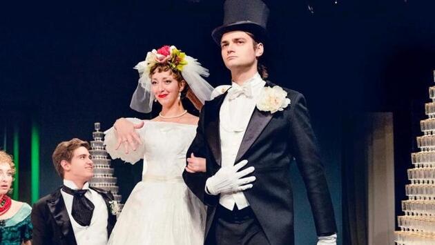 В «Театре на Покровке» - премьера водевиля «Свадьба» А.П. Чехова. Артисты поют, как Карузо, кричат «Горько!» громко, как на митингах, и отплясывают с азартом, грозящим снести праздничными столы со стоящими на них горками хрустальных фужеров. Полноправным соучастником спектакля «Театра на Покровке» на этот раз выступают студийцы Московского молодежного камерного театра «На Пироговке». Наряду с академическими столичными театрами, в Москве существует немало маленьких, уютных, жизнь которых постоянно бьет ключом, хотя само это движение не всегда видно глазу завзятых театралов. Но у подобных театров есть свой верный зритель. Один из таковых коллективов – Московский молодежный камерный театр «На Пироговке», созданный при Первом Московском государственном медицинском университете имени И. М. Сеченова. Сеченовский институт считает своим самым выдающимся выпускником Антона Павловича Чехова, который окончил в 1884 медицинский факультет Императорского Московского университета, правопреемником которого и является Сеченовский университет. А у Антона Павловича, как известно, было две страсти - медицина и литература. Поэтому когда в театре «На Пироговке» задумались, чем отметить 260-летие Университета, то обращение к драматургии А.П. Чехова оказалось естественным и закономерным. А так как преподаватели, играющие еще и на сцене, долгие годы дружили с народным артистом России Сергеем Арцибашевым, основателем «Театра на Покровке», то возникла оригинальная идея – соединить в новом спектакле усилия студийцев «Пироговки» и профессиональных артистов «Покровки». Оставалось только подыскать подходящий материал. Выбор пал на чеховский водевиль «Свадьба». Спектакль поставила режиссер Ольга Захарова, а общее руководство проекта осуществлял Геннадий Шапошников. Так москвичи получили новый веселый водевиль, а ВУЗ – подарок к своему юбилею.Прелесть пьес Чехова в том, что в острых и вневременных авторских шутках зрители считывают узнаваемые приметы окружающей действительности. Не случайно столько лет живут в народе афоризмы водевиля: «Они хочут свою образованность показать и всегда говорят о непонятном...», или «Не тыкай вилкой в омары - это для генерала поставлено». Актуально, не правда ли? Нет сегодня человека, которому был бы незнаком этот сюжет, в ходе которого мещане Жигаловы пытаются выдать свою перезревшую дочь замуж. Достойных женихов не наблюдается, лишь вертится под ногами чиновник Апломбов, на которого предприимчивая, «дышащая деньгами и туманами» Маман (великолепная Татьяна Швыдкова) делает ставку. Только вот корыстный Апломбов жениться согласен при выполнении ряда условий, одно из которых - приложение к приданому двух выигрышных билетов, а второе – присутствие на свадьбе генерала. Водевиль ставился многими провинциальными и столичными театрами Российской империи, дважды экранизировался, и поэтому самое интересное в нем, конечно же, новые режиссерские ходы и найденные артистами нюансы характеров героев. Спектакль начинается в холе в лучших традициях «Театра на Покровке». Режиссер Ольга Захарова предлагает зрителям поучаствовать во встрече невесты Дашеньки (Екатерина Петрова) и ее жениха Апломбова ( Германс Андреевс). Зрители с азартом включаются в игру, осыпают молодую пару лепестками роз и выкрикивают пожелания любви 