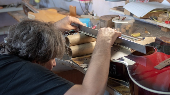 Год назад в России было открыто первое и, на данный момент, единственное производство серийных электрогитар. Отечественные инструменты, выпускаются под брендом Inspector Guitars. Бюджетная линейка гитар удачно сочетает в себе цену и качество, и отлично подходит для начинающих музыкантов. В ассортименте компании присутствуют и более серьезные, профессиональные инструменты, а также инструменты ручной-мастеровой работы. Мы заглянули к ребятам в московскую мастерскую, чтобы рассказать вам, как рождаются первые серийные электрогитары, произведенные в России. В начале была мастерская по ремонту гитар Сейчас трудно подсчитать, сколько гитар прошло через руки основателей бренда Inspector Guitars. Начинали ребята 12 лет назад с мастерской по ремонту и настройке гитар. Свои инструменты к ним приносили такие популярные музыканты как Николай Расторгуев (группа «Любэ»), Евгений Хавтан (группа «Браво»), Артур Беркут, музыканты групп «Ария», «Эпидемия», «Артерия», «Кипелов» и многие другие. Не удивительно, что многолетний опыт работы мастерской перерос в создание собственного производства, которое является ярким примером импортозамещения. Кстати, помимо отечественных покупателей, у ребят много заказов из-за границы: Англия, Япония, Норвегия и Польша. Теперь и в этих странах есть музыканты, играющие на российских гитарах компании Inspector Guitars. Процесс создания серийной гитары Новая модель появляется на бумаге в виде эскиза — идеи. Затем разрабатывается 3D модель для станка с ЧПУ. Это не простая работа, и требует высоко профессиональных навыков. Первая пробная, или обкаточная модель вырезается из черновых материалов, изучаются все недочеты и вносятся правки, если они нужны. Данный этап может повторяться несколько раз, пока не будет достигнут нужный результат. Процесс может занять довольно длительное время, до нескольких месяцев, ибо нет предела совершенству. В среднем, станок вырезает один корпус гитары за 2−3 часа, а вот нароизводство грифа для гитары может потребоваться от 6 до 9 часов, в зависимости от сложности модели. Станки позволяют одновременно обрабатывать большое количество заготовок с неизменным качеством. Затем заготовки проходят ручную обработку перед покраской. Производитель использует матовые лаки, которые больше глянцевых чувствительны к неровностям, поэтому этап ручной обработки считается очень важным. Покраска, так же процесс трудоемкий и требует опыта и времени. Большая ответственность на этапе сборки гитар, где части превращаются в инструмент, устанавливается фурнитура и отстраивается новорожденная серийная гитара российского производства. Изготовление одной гитары может занять 2- 3 недели, в зависимости от загрузки производственных мощностей. Как можно больше отечественного Для создания гитар Inspector Guitars стараются использовать как можно больше отечественных компонентов. Дерево для серийных моделей закупают у проверенных поставщиков с Кавказа и Дальнего востока. Все закупки проходят тщательную сортировку. К сожалению, мало комплектующих для гитар производится в России, поэтому у ребят богатые деловые связи с Америкой, Англией, Китаем и, даже, Аргентиной. Но все-таки, один из главных компонентов электрогитары- звукосниматели отечественного производства. Для Inspector Guitars звукосниматели изготавливают Илья Фокин FOKIN pickups (Москва