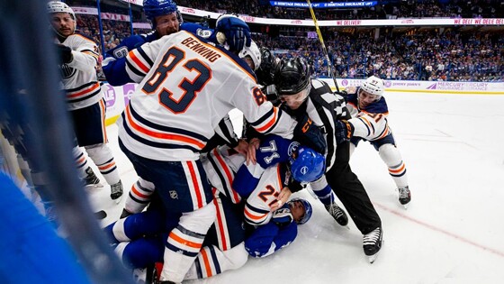 Начало этой недели сложилось очень неудачно для «Эдмонтона Ойлерз». Команда Коннора Макдэвида (ну а как?!) в режиме «бэк-ту-бэк» играла с «Вашингтоном» и «Тампой» и проиграла дважды за два дня. В концовке второго матча «Нефтяники» еще и стали организаторами очень некрасивого эпизода. Форвард Милан Лучич, хорошо известный своим хулиганистым поведением, при счете 2:5 выскочил на лед и начал охотиться за коллегой из «Тампы» Матье Жозефом. Лучич догнал соперника в углу площадки, совершил мощный хит, после чего ударами в голову начал добивать соперника. Через несколько секунд на площадке началась массовая драка, а хоккеисту «Эдмонтона» в итоге выписали «2+10» за блокировку и грубость. Теперь Лучича, скорее всего, ждет дисквалификация. Возможно, длительная, так как Милан — рецидивист. Вот момент из прошлого сезона, когда он набросился на голкипера «Калгари» Майка Смита. А вот матч 2011-го года –Лучич решил не тормозить и снес вратаря «Баффало» Райана Миллера. От 193-сантиметрового форварда прилетало даже судьям. Правда, здесь злого умысла у хоккеиста-хулигана, вроде бы, не было. Подпишитесь на канал Sport24 в Яндекс.Дзене