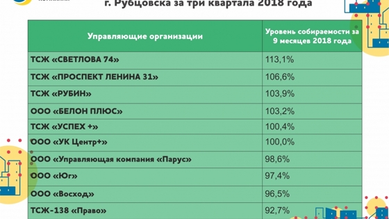 Ответственная работа управляющих организаций является важным фактором качественного прохождения отопительного периода наряду с работой теплоснабжающей организации. Сибирская генерирующая компания выбрала лучших и худших партнеров среди УК и ТСЖ Рубцовска по итогам трех кварталов 2018 года. Критерием для включения в рейтинг и антирейтинг исполнителей коммунальных услуг стал показатель уровня собираемости платежей за уже полученную тепловую энергию. В список лучших попали десять организаций. Все вместе они обслуживают 155 домов. Так уровень собираемости платежей выше 100% у пяти ТСЖ, ЖСК - «Светлова 74», «Проспект Ленина 31», «Рубин», «Успех+», ЖСК «Железнодорожник+» и у одной управляющей компании «Белон плюс». Также в рейтинг попали «УК Центр», «Парус», «Юг» и «Восход». Еще десять исполнителей коммунальных услуг Рубцовска стали аутсайдерами по итогам трех кварталов. Причем две из названных компаний попадают в антирейтинг не впервые и на сегодняшний день в них введена процедура банкротства по заявлениям подразделения СГК - Барнаульской тепломагистральной компании. Это «Экспресс Сервис» и «Согласие». На двоих они обслуживают в Рубцовске 36 многоэтажек, а их неоплаченный долг за тепло и горячую воду составляет почти 14 млн рублей (по данным бухгалтерского учета группы компаний СГК). Также в список компаний с низким уровнем собираемости платежей попали управляющие организации «Спектр», «Успех», «Город ОК», «ТехноСтрой», «Квартет», «Легион», ЖСК «Машиностроитель» и ЖК «Комфорт». Общая задолженность компаний-аутсайдеров за тепловую энергию составляет 38,6 млн рублей. Уровень собираемости у них колеблется от 89 до 31%. На обслуживании этих УК и ЖСК находится 101 многоквартирный жилой дом. - Впервые за все время работы СГК в Рубцовске мы были вынуждены пойти на то, чтобы подать заявления о банкротстве в адрес управляющих организаций, - говорит директор Барнаульского филиала Сибирской теплосбытовой компании Игорь Холодков. – На такие меры мы идем вынужденно, когда никакие другие методы не срабатывают. Хотелось бы напомнить, что те средства, которые мы получаем за потребленные ресурсы, формируют материально-техническую базу наших производственных предприятий – это и ремонты оборудования и трубопроводов, закупка топлива и так далее. Это то, от чего напрямую зависит качество теплоснабжения города.