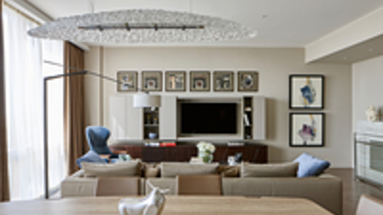 История создания интерьера похожа на сюжет из фильма. В архитектурное бюро Aaarchitect обратилась молодая пара. Супруги — актёры кино, и вся их жизнь вертится вокруг кинематографа. Они даже квартиру купили поближе к работе и попросили дизайнеров Анну Сахарову, Алису Лобанову и Александра Юдина создать атмосферный интерьер для отдыха после активных, насыщенных будней. «В первый раз мы встретились с заказчиками за чашечкой чая, обсудили их предпочтения, вкусы, пожелания по стилю и функциональности пространства, показали свои работы, — рассказывает Анна Сахарова. — Когда начали задавать уточняющие вопросы и обсуждать, что им вообще нравится, выяснилось, что они фанаты кино. Так родилась идея создать характерный интерьер, а отправной точкой стала старая фотокамера, доставшаяся хозяину по наследству от прабабушки. Она задала общую концепцию интерьера, тему кино, фото и видео, а также колористическое решение». Поначалу планировалось сделать цвет стен светло–бежевым в гостиной и тёмным в спальне. Дизайнеры подготовили несколько выкрасов, но один из них (на него особенно не рассчитывали) настолько пришёлся хозяевам по душе, что все плоскости и даже плинтуса решили выкрасить в него. Так цвет сепии, присущий старым чёрно–белым фотографиям, стал отличительной чертой проекта. «Заказчики просили выдержать интерьер в спокойных тонах, сделать его предельно ровным, без ярких акцентов — домашняя обстановка должна расслаблять и настраивать на отдых. Но мы даже не предполагали, что в итоге они остановятся именно на этом оттенке. Он придал интерьеру особое очарование и потайной смысл — даже цветовая гамма тут символична». Квартира находится в новом доме. Свободное от перегородок пространство зонировали с учётом образа жизни хозяев. Особое внимание дизайнеры уделили гостиной и спальне. В спальне сделали рабочий уголок, а гостиную организовали в просторном помещении с прекрасными панорамными видами. Здесь можно посидеть у камина или позавтракать, любуясь пейзажами города, а также принять гостей. «В актёрской среде принято устраивать послепремьерные вечеринки, и эта квартира удобна тем, что находится рядом с Мосфильмом и здесь можно собраться узким кругом единомышленников, — замечает Алиса Лобанова. — Студийные съёмки могут задерживаться до ночи, и сократить путь до дома всегда очень приятно. Наличие квартиры в непосредственной близости от работы даёт возможность забежать домой на перекус и отдохнуть в перерывах между съёмками». Алиса Лобанова добавляет: «Заказчикам меня и Анну Сахарову порекомендовали их друзья, которым мы спроектировали интерьер. Нам они очень понравились — молодые, активные люди, и с ними работать было одно удовольствие, да и сама концепция проекта оказалась очень интересной и вдохновляющей. Гордимся, что создали пространство, которое стало для заказчиков любимым домом».