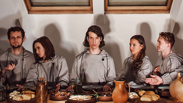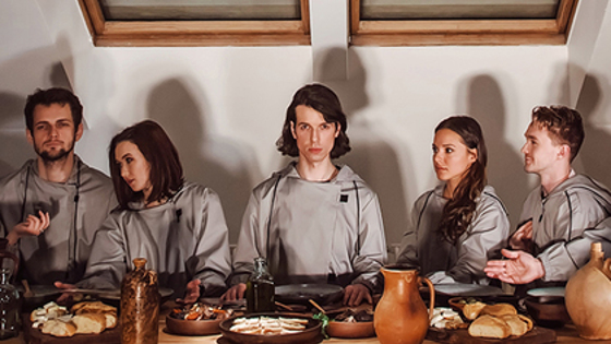 В московской подворотне рядом со станцией метро «Пушкинская» открылся «театральный променад с ужином в финале». Это иммерсивное представление, в котором зрителей и актеров не разделяет пространство между залом и сценой, да и грань между гостями и хозяевами шоу полностью стирается. Что происходит на самом необычном столичном ужине под названием «Зеркало Карлоса Сантоса» — в материале «Ленты.ру». «Добро пожаловать в "Зеркало Карлоса Сантоса". Пожалуйста, никуда не уходите», — встречает вас мягкий мужской голос, когда двери лифта в подъезде дома на Большой Дмитровке смыкаются. В замкнутом пространстве такая просьба звучит немного жутко — уйти-то никуда не получится. Впрочем, это только первый звоночек клаустрофобии, которая еще не раз поскребет по затылку за время спектакля. Создатели иммерсивного ужина — это предприниматель Евгений Кадомский, семь раз номинированный на «Золотую маску» режиссер Талгат Баталов, драматург Максим Курочкин, театральный художник Ольга Никитина и хореограф театра современного танца «Цех» Александр Андрияшкин. Кадомский и Баталов уже устраивали иммерсивный спектакль «Декабристы» в Санкт-Петербурге, а в Москве решили не просто повторить свой успех, а вывести его на новый уровень. Ждать начала действия нужно в комнате с креслами и горящей люстрой в центре, лежащей на коврах, пока на этаже выше, в лучших традициях соседей по хрущевке, перекатывают огромные металлические шары, а ты пытаешься понять: это для тебя готовят диковинные декорации или же спектакль уже начался? Группа зрителей состоит из 11-12 человек. Запомнить других гостей получится с трудом — в начале представления всех одевают в однотипные серые балахоны и маски, вручают наушники с «маленьким электронным помощником», который будет вести зрителя почти весь спектакль. Поэтому все равно остаешься с чувством, что посторонних людей тут нет и вся постановка разворачивается только для тебя. Несмотря на то что начинается «Зеркало» словно сеанс групповой психотерапии, иммерсивный спектакль остается интимным переживанием. «Интимным» спектакль оказывается не только в плане погружения в себя, потому что для зрителей приготовили и долю умеренной эротики (включая танцы в стеклянной душевой кабинке), а актеры, которых трогать запрещено, уводят посетителей в укромные углы, чтобы, например, внимательно посмотреть в глаза. Здесь же человек может подбежать к зрителю, словно желая задать рутинный вопрос, а затем рухнуть в конвульсиях под ноги — ощущение от такого было бы жутким, если бы не отвлекающий голос в наушниках и осознание, что ты и сам выглядишь весьма пугающе в плаще ОЗК и маске пожирателей смерти из «Гарри Поттера», в которые посетителей одевают в начале постановки. В какой-то момент начинаешь задаваться вопросом, сколько квартир дома создатели отвели под спектакль — участников водят и возят по лабиринтам, коридорам, комнатам с абсолютно неожиданными декорациями, и кажется, что ты заходил в здание куда меньшее, чем то, где оказался. Включающаяся в самые разные моменты неоновая подсветка и агрессивная электронная музыка в наушниках выбивают из состояния медитации, в которую зрителя старательно погружали минуту назад, но об этом не успеваешь задуматься, потому что тебя уже передают из рук в руки и ведут в другую комнату. Сколько прошло 