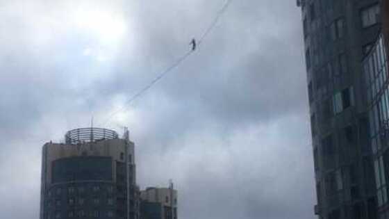 Петербургские канатоходцы сорвались, однако их выручила страховка. Видео