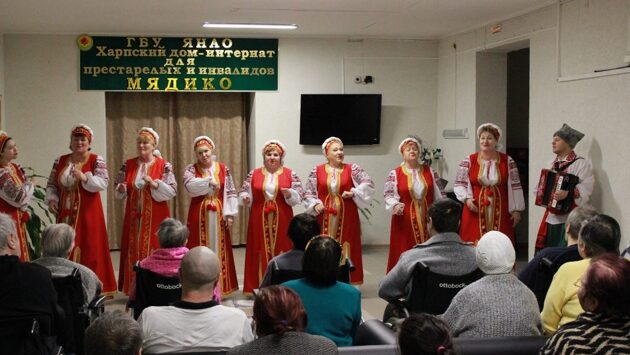 В преддверии Дня рождения Ямало-Ненецкого автономного округа в Харпском доме-интернат для престарелых и инвалидов «Мядико» звучали звонкие голоса народного вокального коллектива «Чаривныци» из Городского дома культуры г. Лабытнанги. В этом году они стали лауреатами второй степени III всероссийского конкурса пенсионеров России «Поединки хоров». На конкурсе коллектив исполнил 5 песен и 5 декабря малым составом из 9 человек впервые исполнили их в Мядико. Выступление стало возможным благодаря совместной работе Союза пенсионеров и компании «Ямалкоммунэнерго». Кроме того, коммунальщики приехали не с пустыми руками: в библиотеку Мядико передали книги коллеги-поэта Юрия Ветрова «Линии судьбы», а также приготовили вкусные пироги и живые витамины. Отдельной благодарности за содействия в организации доставки артистов удостоилось ОАО «Тепло-Энергетик» и вкусных угощений кафе «С пылу, с жару». Напомним, что в 2017 году «Ямалкоммунэнерго» заключило договор о сотрудничестве с «Союзом пенсионеров России» по ЯНАО. В данном документе прописаны все меры по усилению совместной работы относительно политики в сфере социальной защиты для работающих и не работающих пенсионеров. Источник превью: пресс-службы АО «Ямалкоммунэнерго»