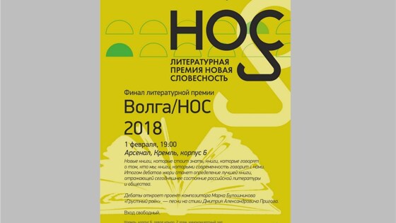 Десять лет Фонд Михаила Прохорова проводит литературную премию "НОС", которая присуждается книгам, лучше всего рассказывающим о современности и о нас самих. Премия утверждает, что Новая отечественная словесность может и должна соответствовать Новой отечественной социальности (НОС), поэтому книги выбираются в ходе открытых дебатов при участии публики. В сезоне 2018/2019 премия расширила границы. Было решено, дебаты проводить не только в столице, но и на периферии. Первым городом вполне заслуженно стал – Нижний Новгород. Во-первых, это Родина Максима Горького, яркого представителя литературной истории страны. А во-вторых, за последние несколько лет город сильно "подрос" в плане культурной и литературной жизни. Так появилась нижегородская версия премии – "Волга/НОС". В октябре 2018 года нижегородское жюри в составе Евгения Стрелкова (председатель жюри, медиахудожник, поэт), Марии Гончаровой (главный редакторов нижегородского издания "Селедка" и сайта "The Village Нижний Новгород"), Артема Филатова (художник), Марии Гельфонд (историк литературы) и Дмитрия Володина (предприниматель и меценат) изучило претендентов на премию и в ходе публичных дебатов определило "шорт-лист": 1. Зиновий Зиник "Ермолка под тюрбаном" 2. Юрий Лейдерман "Моабитские хроники" 3. Наталья Мещанинова "Рассказы" 4. Мария Степанова "Памяти памяти" 5. Александр Архангельский "Бюро проверки" 6. ВикторПелевин "iPhuck 10" 1 февраля из "короткого списка" будет выбран победитель первого сезона "Волга/НОС", которому вручат статуэтку-символ премии и двести тысяч рублей. Дебаты премии "Волга/НОС" — открытые, публика в них участвует и даже имеет право голоса. Дебаты откроет выступление композитора Марка Булошникова с проектом "Грустный раёк" — песни на стихи Дмитрия Александровича Пригова. Финал российской литературной премии "Волга/НОС" пройдет в ГЦСИ "Арсенал" 1 февраля в 19:00. Адрес: г. Нижний Новгород, Кремль, корпус 6.