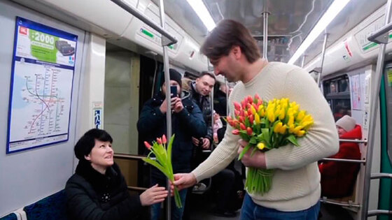 Братья Запашные и Сергей Боярский подарили цветы девушкам в метро