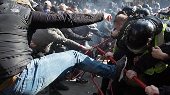 Не так давно я пересматривал снимки из своего архива, на которых оказались запечатлены самые драматические моменты Евромайдана. Среди них было знаковое фото сотрудников спецназа МВД Украины «Беркут», сделанное 19 января 2014 года — в самом начале силового противостояния между МВД и протестующими на улице Грушевского. Силовое крыло Майдана, где изначально доминировали представители ультраправых, впервые атаковало в тот день спецподразделение милиции — которая совершенно не понимала, как реагировать на швыряющих в них петарды парней, одетых в балаклавы и камуфляж. Определенного приказа сверху явно не поступало — потому что у Януковича сами не знали, что делать, и проводили закулисные переговоры со «святой троицей» в составе Кличко, Тягнибока и Яценюка. В результате спецназовцы большей частью пассивно укрывались от камней и петард щитами, иногда огрызаясь. В какой-то момент, после наступления ситуативного перемирия, мы с коллегами-репортерами подошли к ним в упор, вместе со всей остальной толпой. Футбольные хулсы насмешливо стучали палками в стальные щиты и брызгали в забрала баллончиками, замазывая их краской. А правоохранители обреченно смотрели на журналистов. И было видно, что они совершенно деморализованы, не доверяют своему президенту и совершенно не понимают, за что им предлагается рисковать своим собственным здоровьем — и даже жизнью. Я сразу вспомнил об этом 9 марта, когда украинские каналы показывали события в Киеве и Черкассах. На Банковой шел митинг «Национального корпуса». Лидеры этой ультраправой партии во главе с «Белым вождем» — депутатом Андреем Билецким — толпой наваливались на сцепленных в связку спецназовцев, клеили им на шлемы свои стикеры, кричали в лицо глумливые оскорбления. А сотрудники МВД вяло отпихивались, не решаясь дать нападавшим по-настоящему серьезный отпор. В Черкассах все было еще жестче — местные нацисты во главе с членом правления Нацкорпуса, который прославился нацистскими кричалками на стадионе, натуральным образом били охранявшую Порошенко полицию. Которая, так же как и в Киеве, не демонстрировала нападавшим ничего, кроме дезорганизации и растерянности. Эта смешная и позорная ситуация наглядно говорит о том, в каком психологическом состоянии находятся сейчас украинские силовики. Понятно, что в любой европейской стране — а уж тем более в США — никто не смог бы вести себя с полицией таким образом, потому что спецназовцы сразу же ответили бы на подобное отношение пулями — причем, возможно, и боевыми. Мы видели это на прошлогодней первомайской демонстрации в Париже, когда полицейские жестко избивали участников демонстрации, не обращая внимания на фотокамеры, не жалея журналистов, подростков и женщин — хотя от этого в основном пострадали совершенно мирные граждане, которые вышли на официально согласованный митинг. Теперь это повторяется во Франции каждые выходные — местный спецназ самым бесчеловечным образом подавляет протесты «желтых жилетов», и в результате силовых действий полиции погибло несколько протестующих, десятки людей получили ранения и увечья, а тысячи отправились за решетку, получив самые серьезные сроки. Все это резко контрастирует с поведением украинской полиции. И неудивительно, ведь им противостоят не безоружные мирные протестующие из народа, а хорошо 