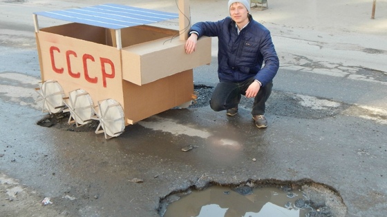Новосибирский студент Михаил Куторкин сделал из картона модель марсохода и устроил с ней фотосессию на левом берегу, чтобы поднять проблему плачевного состояния городских дорог. Необычная фотосессия прошла на Юго-Западном жилмассиве — в кадр попали ямы на проезжей части возле дома № 130 на улице Троллейной, рассказал корреспонденту НГС автор проекта Михаил Куторкин. «Если бы русские высадились на Марс, они бы узнали родные просторы: ямы и кратеры. Появилось бы чувство, будто и не улетали никуда из России, с Земли, а здесь же, на Земле, нашли четырёхколёсный аппарат и каждый день бороздят асфальт в надежде найти не жизнь, а дороги», — рассуждает Михаил Куторкин. По его словам, модель марсохода почти полностью сделана из картона, исключением стали только колёса: они из пластика. Чтобы сымитировать космический аппарат, у студента ушло полторы недели. Создание этой модели Михаил Куторкин приурочил ко Дню космонавтики, который отмечался на этой неделе, 12 апреля. Это не первый проект студента Новосибирского колледжа питания и сервиса Михаила Куторкина. Прошлой зимой он, например, вылепил из снега два огромных грузовика и сел между ними на поперечный шпагат, чтобы сымитировать трюк актёра Жана-Клода Ван Дамма из рекламного ролика для компании Volvo. А в феврале этого года Михаил Куторкин создал из снега раритетный кабриолет Ford Mustang и сфотографировался на его сиденье в шортах и с оптимистичным плакатом «Лето близко!». Внимание, проект «Где дороги?». Присылайте на news@ngs.ru фотографии с самыми огромными ямами, с запущенными улицами, с бестолковым дорожным ремонтом, с разбитыми тротуарами и с самыми курьёзными последствиями работы дорожников.
