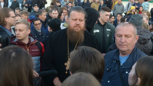 Настоятель Храма-на-Крови отец Максим Миняйло два дня приходил в сквер к протестующим, чтобы поговорить и объяснить свою позицию. Защитники не отпускали его до позднего вечера — слушая, споря и часто не понимая. Мы поговорили с отцом Максимом о том, насколько это правильно — начинать историю храма со скандала и насилия? — Вы вчера вечером пришли на акцию в защиту сквера, разговаривали с протестующими. Это было ваше решение или послало начальство? — Один из федеральных каналов попросил меня дать интервью прямо на месте. Они разговаривали с участниками собрания, потом со мной. После этого я остался, начал общаться. Там, на месте, было еще несколько священников. Но они были в обычной одежде. Они просто проходили мимо, увидев акцию, подошли. С теми, с кем я успел поговорить, у нас был вполне мирный диалог. Не скажу, что конструктивный. Но несколько человек меня услышали, я это видел. Они ушли с этого собрания по моей просьбе. — Вы призывали покинуть? — Да. Призывал покинуть. Пытался объяснить: если вы себя ассоциируете как-то с церковью — а эти люди себя называли православными, — то должны понять, что православному человеку не очень хорошо, неправильно протестовать против храма. Имея в виду весь контекст страдания этого храма начиная с 30-х годов. И попытки уже 10 лет его восстановить. Несколько человек услышали этот призыв, поверили мне как священнику. Другие люди, которые не имели отношения к религии, с ними был добрый, шутливый, ироничный где-то разговор. Пытались по-доброму, не задевая никого, поговорить, приводили свои аргументы. Там много было детей. У меня просто дочери 20 лет, для меня многие собравшиеся еще дети. — А дочь ваша какую позицию разделяет. — Ну как в семье священника может быть раздор по этому поводу? Хотя я знаю семьи из моих прихожан, где есть конфликт внутри семьи по этому вопросу. Дочь за то, чтобы сохранить сквер, мама переживает, что не могут найти общий язык по этому вопросу. Да, тут обострилась проблема отцов и детей. Что мы не смогли привить им определенные ценности, не смогли объяснить такое понятие, как святыня. — Православные ценности? У нас светское государство, это разве не личное право каждого — признавать или не признавать религиозный объект святыней? — Безусловно. Но мы ведь сейчас говорим про те семьи, которые себя называют православными. — Один из известных деятелей православной церкви — дьякон Андрей Кураев — не одобряет действия екатеринбургской епархии. — Я слышал. Но для меня он авторитетом не является, с большинством его высказываний я не согласен. Но у каждого свое мнение. — А чем плохо его предложение построить храм в отдаленном районе, благоустроить, создать инфраструктуру? — Предложение хорошее, но оно было бы применимо для ординарного приходского храма. Нигде — ни в Вене, ни в Праге, ни в Лондоне, ни в других европейских столицах — если горожанам предложить построить кафедральный собор на окраине, то никто не согласится. собор святого Стефана стоит в центре Вены, собор святого Павла — в центре Лондона. — Это старинные памятники архитектуры вписаны в облик города. А тут, как сейчас говорят, строят «новодел»... — Тем более постыдна история этого противостояния, когда на историческом месте, где сохранен фундамент здания, многие воспротивились. А разве это честно? Это принадлежало верующим людям, это