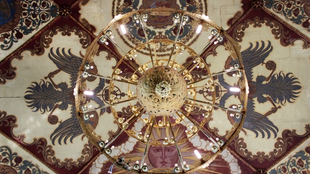 Просто так попасть в Государственный банк (если вы не юридическое лицо) нельзя. Но 17 мая — традиционно день открытых дверей, и можно записаться на экскурсию. Здание построено всего за два года в честь 300-летия царствования дома Романовых и 50-летия Государственного банка Российской империи. Строительство завершилось в 1913 году. Архитектор Владимир Покровский строил уникальное здание в неорусском стиле, напоминающее царский терем. Внутри его украшает пышная роспись. Самое эффектное место в здании — операционный зал. Его площадь — 800 квадратных метров. Высота сводов — 13 метров. Люстры — те же, что и 106 лет назад. Здесь нет ни единой лишней опоры. К металлическим кровельным конструкциям подвешена специальная стальная сетка, которая покрыта особым составом и расписана фресками. Эскизы росписи для этого зала делал сам Иван Билибин, гениальный художник, автор иллюстраций к пушкинским сказкам. Роспись выполняли иконописцы — братья Николай и Георгий Пашковы. На первом этаже есть особое зеркало. По легенде, если в него внимательно посмотреть и загадать желание — оно обязательно сбудется. Одно условие — желание должно быть нематериальным. Украшенное майоликой зеркало создано Петром Ваулиным, знаменитым художником-керамистом того времени. Этажом выше — такое же большое и красивое зеркало, только желания не исполняет. Также читайте наш материал про 5 неизвестных фактов о Госбанке в Нижнем Новгороде.