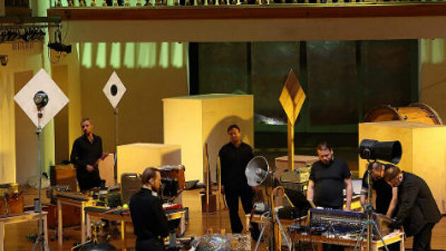 Оценка: 8 из 10 Премьера нового проекта Петра Айду "Антропоценфония" с подзаголовком "Песни машин и механизмов" состоялась в театре “Школа драматического искусства” 7 июня 2019 года. Сразу в глаза бросается мудреное название спектакля - в синопсисе его поясняют так: “антропоцен - эпоха человеческой активности, играющей существенную роль в экосистеме Земли”. Что ж, уже чуть понятнее. “Песни машин и механизмов” - ни на что не похожее звуко-шумовое сочинение, причем уже не первое в творчестве Петра Айду: предыдущий его эксперимент, "Звуковые ландшафты", получил “Золотую маску” в 2016 году. Что же заставило музыканта с серьезной классической подготовкой, пианиста и композитора, взяться за немодную нынче в российском искусстве индустриальную тему? Очевидно, поиск нового. От музыкальных звуков - к звукам природы, а от них - к звукам человеческого труда: безгранична палитра мастера. Идея нашла воплощение благодаря командной работе музыкантов-единомышленников, артистов хора “Школы драматического искусства” и даже драматическим актерам театра. Площадка тоже была выбрана неслучайно: ШДИ всегда приветствует эксперимент, новые формы и средства. Здесь же зародились и "Звуковые ландшафты". 12 частей “Антропоценфонии” по времени занимают час. На сцене мы видим множество разнообразных предметов, не относящихся к музыке, но использующихся для извлечения звука. Насос, всевозможные бруски и кастрюли, листы фольги и т.д. Идут в ход разные палочки и молоточки. Электроника также применяется. Впрочем, отметились и три музыкальных инструмента, но немножко не по назначению. Звуки станков и шум цехов - вот что рисует непривычная музыка, основой которой служит вовсе не мелодия, а ритм и динамические оттенки: громко-тихо. Даже хор практически не воспроизводит звуков определенной высоты, выполняя вместо этого функцию шумовых инструментов. Интересно увидеть в таком качестве известных актеров, среди которых Максим Маминов и Ольга Бондарева. Кроме незначительных перемещений артистов, на сцене нет действия, но музыка машин и механизмов и без того способна захватить многообразием шумов, магией простого ритма. Она рождает массу ассоциаций, история технического прогресса видится прямо-таки в космическом масштабе. Характер постановки влияет и на зрителей: в зале непринужденная обстановка, на ковре перед сценой под присмотром родителей резвятся дети - они это действо воспринимают как предельно естественное. Возможно, даже более естественное, чем любую другую постановку. Конечно, рекомендовать этот перформанс всем и каждому - дело неблагодарное. Но тем, кто приходит в театр в поисках неизведанного, новый эксперимент Петра Айду поможет к нему приблизиться. Марина Ильина, InterMedia Фото: Дмитрий Лисицин