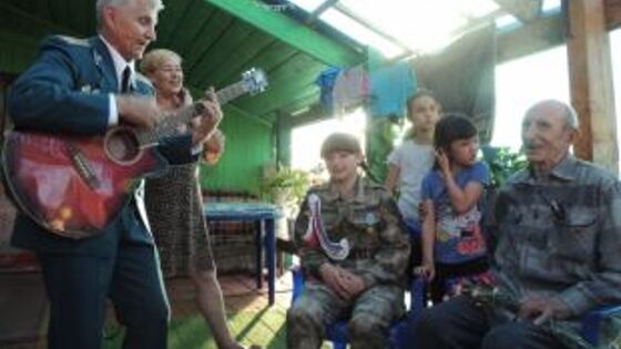 В Мотыгино мы планировали приехать ещё в конце апреля - во время традиционного автопробега «Поздравь ветерана с Победой!», который в этом году проходил по северным территориям края. Но попасть туда в распутицу непросто. Посёлок находится в 400 км от Красноярска. Но по пути нужно преодолеть три реки - Енисей, Тасеева и Ангару. Тогда мы пообещали мотыгинцам, что обязательно посетим их, как только это будет возможно. «Больно вспоминать годы войны» В дорогу отправились небольшой частью нашей команды. Но в районе у нас было много помощников. В том числе ребята из военно-спортивного клуба «Барс». Концерт в доме культуры прошёл в очень тёплой обстановке. Весь вечер выступал на сцене постоянный участник нашего автопробега, подполковник ФСБ в отставке, лауреат всероссийских конкурсов Вадим Черкес. Свои номера также исполнили местные коллективы. Зал подпевал вместе с ними. На встречу пришли и те, чьё детство выпало на годы войны. Антониде Потаповой в 1941-м было всего пять лет. Отца сразу забрали на фронт. Говорит, что она его даже не помнит, фотографии не осталось - тогда в деревне негде было сделать снимок. «Мать у нас скоро умерла, пятеро детей осталось. Но в детдом никто не попал. Старшая сестра за всеми смотрела. Голодно очень было, тяжело. Больно всё это вспоминать». У Александры Горбуновой официального статуса «ребёнок войны» нет. Но она прекрасно помнит те страшные годы. «Мне было семь лет. Жили тогда в Брянской области. До последнего родители не хотели эвакуироваться. Поэтому в тыл нас увозили уже последним поездом. Нам повезло. Ведь эшелоны тогда бомбили, и много людей погибло по дороге. Нас обстреливали один раз всего. Мы тогда должны были ехать в Красноярск, но высадились почему-то в Свердловске. У отца была бронь, он по нескольку суток не возвращался с завода, дистрофию заработал: сам почти ничего не ел, всё нам отдавал. После войны мы вернулись на родину. Там разруха, голод. Ведь Сталин не разрешал даже мёрзлую картошку и колоски с полей собирать». В Мотыгино Александра Ефимовна приехала после мединститута. Почти 60 лет проработала в районной больнице, возглавляла терапевтическое отделение. В гостях у ветеранов Концерт продолжился во дворе дома ветерана войны Александра Черепанова. Потом он очень подробно рассказал про свой фронтовой путь. Призвали его 17-летним. Правда, к месту службы отправили не сразу - из-за распутицы. Поэтому военному делу их обучали прямо в школе. В конце 1943 года после прохождения спецподготовки он оказался в лётном полку - был мотористом, обслуживал самолёты. Воевал на Украине, потом в Европе. «Под Будапештом были тяжёлые бои. Он же был в тройном окружении: сначала его наши в кольцо взяли, потом немцы окружили, потом опять наши. У лётчиков была трудная задача - не попасть по своим. Помню, тогда у каждого самолёта было по 4-5 вылетов в сутки. Потери были, конечно, и мои самолёты не возвращались обратно». После войны Александр Леонтьевич ещё пять лет жил в бывших венгерских казармах. Не отпускали его со службы. Только однажды в отпуск отпросился домой. И чуть за это не поплатился. «Я особо в отпуск-то не рвался, понимал, как трудно добираться до Мотыгина. Но мама очень просила, написала, что маленькие самолётики летают. Пока я добирался в Красноярск, мои две недели почти истекли. Но всё равно, думаю, до дома доберусь. А самолёты, о