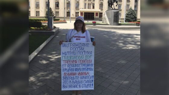 Жительница посёлка «Пушкинский дол» в Геленджике вышла с пикетом к администрации Краснодарского края требованием губернатору разобраться в её проблеме. Женщина объяснила, что пикетирует администрацию из-за обещаний Вениамина Кондратьева разобраться с проблемой земли под посёлком «Пушкинский дол». По её словам, проблема не разрешилась, а попасть на приём к губернатору жителям посёлка не удалось. «Пушкинский дол» вновь выходит на улицу, потому что уже прошло почти два года с тех пор, как администрация, вроде как, начала нам помогать в решении вопроса, но на сегодняшний день всё стоит опять на одном месте. У нас был совет по правам человека при президенте, на совещании было сказано, что вопрос наш решён. Там также присутствовал Кондратьев, он тоже подтвердил, что вопрос решён, но мы стоим на мёртвой точке», — рассказала пикетчица. Проблема «Пушкинского дола» началась в 2008 году. Компания «Краснодар-Ресурс» взяла в аренду земельный участок под посёлком, а потом переуступила право аренды «Черноморской финансовой компании». Земли относились к лесопарковой зоне. Участки в посёлке начали продавать. Покупателей уверяли, что в генплан Геленджика вот-вот внесут изменения и участки станут землями населённых пунктов. Однако это не произошло. На руках у жителей посёлка оказались только документы о переуступке права аренды. Строительство на этой территории запрещено. 158 человек были признаны потерпевшими по уголовному делу о мошенничестве. Всего в посёлке купили участки более 400 семей. Часть из них живёт в морских контейнерах и движимых бытовках. Жители настаивают на изменении категории земель. Они даже собрали около миллиона рублей на разработку проекта изменения зон лесных участков, но 4 раза получали в Рослесхозе отказ. После этого жители стали выходить на пикеты и митинги, требовать отставки бывшего мэра Геленджика Виктора Хрестина.
