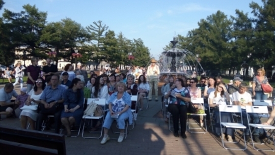 Городской фестиваль искусств «Дыхание города» в самом разгаре, сообщает K1NEWS.RU. В минувшие понедельник и вторник на площадке возле центрального фонтана прошли литературные дни. Если кто-то думает, что всё ограничилось скучной декламацией виршей а-ля Кострома-купола-облака, то глубоко ошибается. И в без того тщательно продуманный сценарий зачастую вклинивались неожиданные яркие моменты. К тому же ни туч, ни даже облаков не наблюдалось. С погодой повезло необычайно. {slider} Курировавший концерт поэт Дмитрий Тишинков, по совместительству корреспондент нашего портала, казалось, знает всю пишущую братию региона. Согласно сценарию, на подмостках ярко отметились участники «Клуба поэтов», областной литературной студии Александра Бугрова, молодёжного коллектива «Испокон веков». Не забыты были и таланты-одиночки. Чего только стоит выступление гостя фестиваля, лауреата премии имени Пастернака Ивана Волкова, стихи которого переведены на несколько языков. Во время свободного микрофона на сцену неожиданно вышел... английский писатель. Петер Сэмсон приехал к нам из города Йорка. Прогуливаясь с переводчицей по центру Костромы, не мог отказать себе в удовольствии выступить. Читал на английском. Русский обещает подтянуть к осени, когда вновь вернётся в наши края. На сегодняшний же день помимо родного, Петер, свободно владеет французским, итальянским, немецким, испанским языками. На каком языке написана детская книжка "Кирилл - крокодил из Костромы", нам не ведомо. Но запись, сделанная после концерта в соцсетях - на чисто русском: «Было чудесно! Привет! Спасибо большое за возможность выступить!». Юная поэтесса Дарья Бородина свою возможность выступить чуть не упустила. При том, что подружка оба вечера буквально уговаривала её выйти на сцену. Благо, творческий блеск в Дашиных глазах заметили организаторы. И не пожалели! Стихи девушки, помимо ажурных образов, отличаются взрослой зрелостью. Приятным открытием стало и выступление Натальи Морозовой. Вопреки фамилии, стихи Наташи насыщены теплом. С теплом они были восприняты и слушателями. Оно и понятно - качественная женская лирика всегда беспроигрышна. {related} Не затерялся среди народных масс и когда-то популярный артист областного театра Руслан Джурабеков. Хотя, почему "когда-то"? Руслан по-прежнему узнаваем и любим. К тому же, к костромским почестями и наградам добавилась знаменитая «Золотая маска», которой актёр удостоился, уже выступая в Пензенском театре. В силу профессии Руслан устроил на сцене мини-спектакль. А помог ему в этом друг гусляр. Кстати, насчёт народных масс... Публика фестиваля не только сидит на пластиковых стульях возле сцены. Гуляющие у фонтана, отдыхающие на лавочках и даже на траве с интересом прислушивались к чтению стихов. Более того, граждане на остановке порой забывали о подошедшей маршрутке. Именно так случилось, когда Андрей Симонов исполнил под минусовку свой пламенный хит «Девчонка кожаная» на стихи безвременно ушедшего из жизни костромского автора Евгения Бойцова. Впереди у «Дыхания города» еще много всего интересного: театральные встречи, рок, классическая музыка. Да и для поэтов ничего не закончилось. Нескольких самых-самых ждёт выступление на гала-концерте. Ну и благодарственные письма – вещь немаловажная.