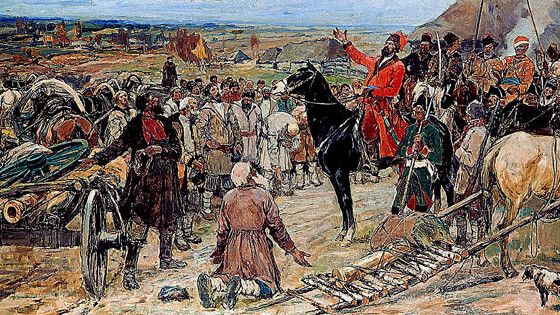 245 лет назад повстанческое войско под командованием Емельяна Пугачёва было разгромлено царскими частями в сражении у Казани. Сам лидер бунтовщиков всё ещё был популярен в народе и после отступления добился некоторых успехов. Однако разгром на Волге стал для него началом конца — у стен Казани Пугачёв потерял значительную часть своих сил. Представители его ближайшего окружения устали от войны и потеряли веру в свои силы. Вскоре они схватили своего вождя и передали его властям. Как отмечают эксперты, бунт Пугачёва стал последним крупным восстанием в России вплоть до начала XX века, которое вынудило Екатерину II ускорить процесс укрепления самодержавия. Становление крестьянского вождя Пугачёв родился в станице Зимовейской Донской области. Ориентировочно он появился на свет в 1742 году. Когда Емельяну было 17 лет, он поступил на службу вместо вышедшего в отставку отца. Пугачёв участвовал в Семилетней и Русско-турецкой войнах, дослужился до офицерского звания — хорунжего, отличился при взятии Бендер. В 1771-ом Пугачёв уехал из армии на Дон менять лошадей. Но вернуться не смог по состоянию здоровья — у него на ногах и груди появись гнойные язвы. Он отдал другому казаку двух лошадей со сбруёй, саблю, бурку, зипун и 12 рублей, чтобы тот его подменил. Пролежав месяц дома, Пугачёв поехал в Черкасск, чтобы подать в отставку. Но на вольные хлеба казака отпускать не захотели, предложив ему вместо этого лазарет. Пугачёв от казённого лечения отказался. Впоследствии с разрешения командования он отправился в Таганрог проведать сестру и зятя. Родственники пожаловались Пугачёву на жизненные сложности и, в конце концов, решили вместе Емельяном бежать за Дон, в Терское войско. С этой целью они приехали в Зимовейскую, но жена с матерью уговорили Пугачёва никуда не убегать. Правда, зятя с товарищами он переправил через Дон. Впоследствии беглецы вернулись и доложили властям, что им помогал Пугачёв. Тот попытался бежать, но был пойман и взят под стражу. Дожидаться решения командования будущий вождь восстания не стал, и сбежал. Так он оказался вне закона. Некоторое время Пугачёв прятался в окрестностях станицы, потом переправился через Дон и вступил в Терское войско. Затем его не раз задерживали, но казаку удавалось бежать. Спасаясь от возможного преследования, Пугачёв начал выдавать себя за старовера. С помощью представителей общины он добрался до польской границы, и там сделал вид, что якобы возвращается в Россию с Запада. Пугачёв получил паспорт и рекомендации от местного купца-старовера к игумену Филарету, настоятелю старообрядческого скита на реке Иргиз. Начало восстания Осенью 1772 года Пугачёв поселился в ските у Филарета и узнал о волнениях в Яицком войске, которым сочувствовал игумен. В то время у Пугачёва якобы и появилась идея, назвавшись царём Петром III, увести яицких казаков на Кубань к бежавшим ранее «некрасовцам» — потомкам донских и хопёрских казаков, которые ушли в турецкие владения после подавления Булавинского восстания в 1708 году. Пётр III был свергнут женой ещё в 1762 году, после чего умер при не до конца выясненных обстоятельствах. После этого появилось несколько самозванцев, объявивших себя «спасшимся императором». Однако все они были пойманы и отправлены на каторгу. Пугачёв под видом купца прибыл в Яицкий городок, где, представившись Пе