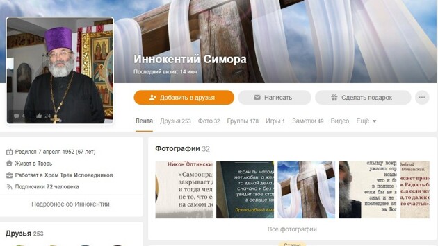 В "Одноклассниках" есть страничка некоего Иннокентия Симоры, который представляется священнослужителем Воскресенской церкви Трёх Исповедников в Твери. Этот человек публиковал посты о сборе средств для реставрации храма, а также призывает в своём статусе обращаться к нему за проведением таинства исповеди: "Здравствуйте, исповедую вас, пишите в сообщения, все обсудим". Но на самом деле такого батюшки в церкви нет. По поводу сбора денег лже-батюшка написал, что "реставрационные работы требуют больших финансовых затрат. Помочь в этом благом деле может каждый. Приход принимает любую помощь. Это могут быть и материалы, и денежные средства, и ваше свободное время". Далее в посте указаны реквизиты, куда следует перечислять деньги, и номер банковской карты на некоего гражданина Кубасова, которого мошенник называет настоятелем церкви. Однако настоятелем в церкви Трёх Исповедников служит иерей Виталий Симора. В разговоре с корреспондентом ТИА отец Виталий сообщил, что в соцсетях действует мошенник. Сейчас руководство храма подготовило заявление в полицию, чтобы правоохранительные органы приняли меры и авантюрист не вводил в заблуждение прихожан. Также священник добавил, что всю информацию о тех, кто работает в храме, можно посмотреть на официальном сайте Воскресенской церкви. Руководитель пресс-службы Тверской епархии отец Сергий Дмитриев уверен, что это фейковый аккаунт. Мало того, что имя настоятеля изменено, так ещё и используется чужое фото - отца Александра Горячева из храма Неупиваемая Чаша в микрорайоне "Южный".