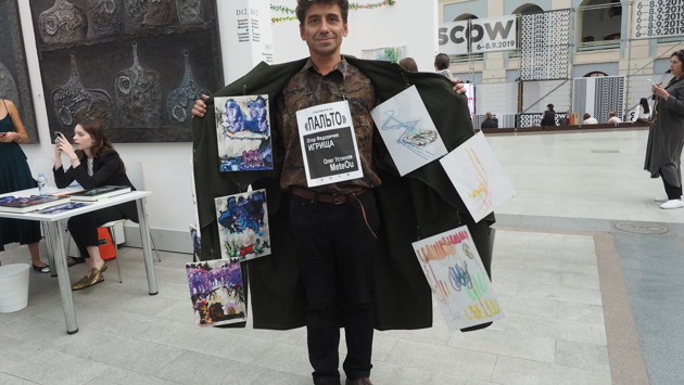 Все свое ношу с собой! Именно этим правилом руководствуется московский художник Александр Петрелли — владелец галереи «Пальто». — Еще в начале 90-х, когда процветала подпольная спекуляция, свой товар продавцы вывешивали на подкладке пальто. В случае облавы пальто запахивалось — товар был спрятан. Вот в 1996 году в галерее «Перцы» я и представил свой сатирический проект, где вместо «товара» к подкладке пальто прикрепил свои небольшие по размеру работы. Уже много лет эта «подкладочная галерея» всегда со мной, — шутит Александр Петрелли во время Седьмой Международной ярмарке современного искусства Cosmoscow. В Гостином дворе она проходит уже в пятый раз. О том, насколько популярно сегодня современное искусство, корреспондент «Вечерней Москвы» решил узнать у директора старейшей российской негосударственной галереи ХL Сергея Хрипуна: — Почти все павильоны заполнены — народу тьма! Это радует, — говорит он. — 67 галерей, 300 художников из 14 стран приняли в ней участие. На открытии ярмарки выступила основатель и директор Cosmoscow Маргарита Пушкина. — Я очень рада сильному международному составу галерей в этом году и тому, что на ярмарке представлено много громких имен, — сказала она. — Вы увидите произведения Джона Балдессари, Микеланджело Пистолетто, прославленных русских художников — дуэт Александра Виноградова и Владимира Дубосарского, Владислава Мамышева-Монро, Олега Кулика и многих других. Мы планируем и дальше укреплять международную составляющую ярмарки. Над этим, в частности, будет работать наш новый арт-директор Саймон Рис. Линейка цен некоторых работ будоражит воображение: так, например, самая дорогая работа Микеланджело Пистолетто стоит более полумиллиона евро! Но покупатель пока не нашелся. Седьмая Международная ярмарка современного искусства Cosmoscow проходит в Гостином дворе до 8 сентября. Читайте также: Эволюция или деградация: эксперты обсудили будущее современного искусства
