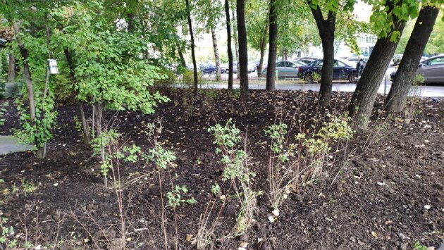 В палисадник около дома 28, корпус 3 на улице Менжинского завезли плодородный грунт