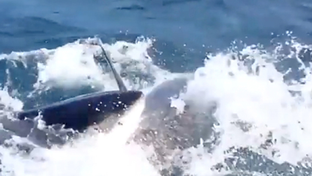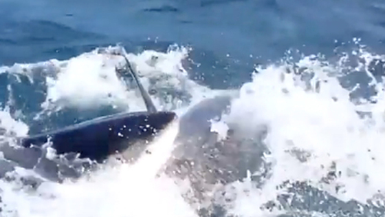 Гигантская хищная рыба укусила за голову любвеобильную акулу-людоеда