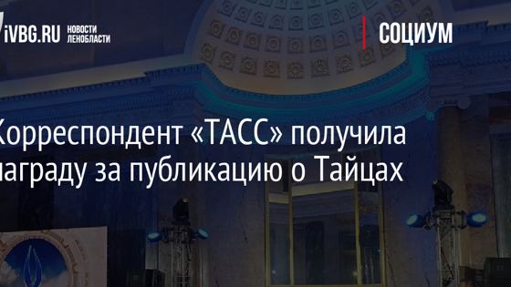 Корреспондент «ТАСС» получила награду за публикацию о Тайцах