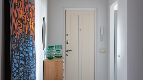 Перепланировка в трешке в панельном доме была небольшая: дизайнер избавилась от перегородки между коридором и жилой комнатой, чтобы найти место для удобных систем хранения. Еще одно изменение — два полноценных санузла. В квартире будет проживать заказчица с двумя дочками, ученицами старших классов. Заказчица любит заниматься рукоделием, играть на пианино, дочери занимаются танцами и спортом. Среди пожеланий было отсутствие телевизора, наличие мастерской для рукоделия. Комнаты небольшие, поэтому их не хотелось загромождать шкафами. В спальнях нужно было предусмотреть диваны-кровати, но с ортопедическими матрасами. В оформлении заказчица склонялась к стилю бохо, с обилием декора, милых вещиц и текстиля. Квартира находится в панельном доме серии П-30, планировка типовая. После ремонта основные зоны остались на месте. В прихожей визуально выделили место для одевания. Коридор очень узкий, не было места для шкафа при входе, поэтому дизайнер выделила в большой комнате место под шкаф и гардеробную: они открываются из прихожей. Заказчики любят принимать гостей, поэтому в ванной установили унитаз, а в санузле — небольшой рукомойник с зеркалом и шкафчиком для фена и гостевых полотенец. Для отделки стен выбрали покраску. На кухне спроектировали большую рабочую поверхность, использовав единую столешницу сложной формы. Фартук сделали из акцентной плитки с геометрическим узором — смотрится стильно и гармонично. В общественных помещениях и «мокрых» зонах на полу использовали керамогранит: в прихожей с геометрическим рисунком, в ванной и санузле — однотонный, остальной — с рисунком под дерево. Там же сделали теплый пол. В комнатах — инженерная доска, по которой приятно ходить босиком. В санузле установили небольшой рукомойник и зеркало. В ванной появился второй унитаз: он примыкает к ненесущей стене из пеноблоков. Усиление конструкции для подвесного унитаза сделано за счет усиленной самонесущей инсталляции — это крепкая система, в которой спрятано боковое подведение труб. Если бы был отдельно стоящий напольный унитаз, то была бы видна труба или ее пришлось бы декорировать. Интерьер выполнен в светлых тонах: прихожая, коридор и кухня с лоджией оформлены в теплом светло-сером цвете. Кухонная мебель — в тон стенам. Спальня заказчицы со светло-зеленым оттенком, комната младшей дочери — серо-бежевая, комната старшей дочери — светло-голубая. Для заказчицы было важно не использовать белый цвет, поэтому потолок, двери, плинтусы молочного цвета. «В комнатах стулья с обивкой в цвет кроватей, но для фотосессии интерьера я привезла свои стулья, которые специально покрасила в акцентные цвета. Стулья сочетаются с картинами и текстилем. У заказчиков есть возможность добавить яркости в интерьер, если захочется. Такое решение гибкое: можно обновлять квартиру хоть каждый сезон без больших затрат», — говорит Ирина Ежова. «Я комбинировала в проекте готовую мебель и мебель на заказ: так получилось оптимизировать бюджет и добавить индивидуальности в интерьер. Например, мини-комод Thimon фабрики The Idea — это серийная мебель с возможностью кастомизации. Можно заказывать цвет дерева и рисунок в любом сочетании, так получается индивидуальный качественный предмет по стоимости серийной мебели. Кухонная мебель „Наша марка“ сделана в основном из стандарт