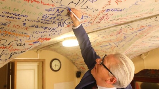 Бельгийский художник Ян Фабр оставил свою подпись в гримерной БДТ с автографами знаменитостей