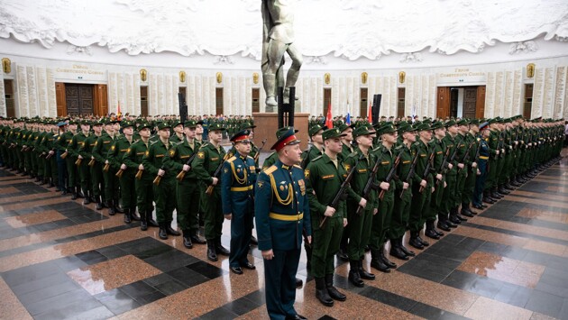 Более 200 новобранцев 154-го отдельного Преображенского комендантского полка и 449-го отдельного гвардейского салютного дивизиона 28 декабря приняли военную присягу в Музее Победы на Поклонной горе. Среди военнослужащих - молодые люди из десятков регионов России, в том числе из Тверской области. "Во все времена служить Отечеству было священной обязанностью", - отметил командир полка, полковник Сергей Бессонов. Церемония состоялась в Зале Славы музея. Здесь на мраморных пилонах высечены имена почти 12 тысяч Героев Советского Союза и Российской Федерации. В этом зале призывники приносят клятву верности уже более 20 лет. Гостям музея на куполе Зала Славы продемонстрировали свето-звуковую инсталляцию, рассказывающую о событиях Второй мировой войны. Почетные гости, ветераны Великой Отечественной войны обратились к юношам с призывом быть достойными памяти их дедов и прадедов, беречь честь и традиции легендарного Преображенского полка. В декабре 2019 года Преображенский полк отметил 40-ю годовщину формирования. Почетный караул Преображенского полка участвует в военных парадах и сопровождает правительственные делегации. Всего батальон почетного караула 154-го отдельного комендантского полка принял участие в 35 000 специальных мероприятиях. Попасть в Преображенский полк считается огромной удачей. Однако требования к кандидатам довольно жесткие - высокий рост, хорошая физическая подготовка, благополучная семья, также призывники не должны иметь проблем с законом или обладать вредными привычками. Информация и фото ФГБУК "Музей Победы".