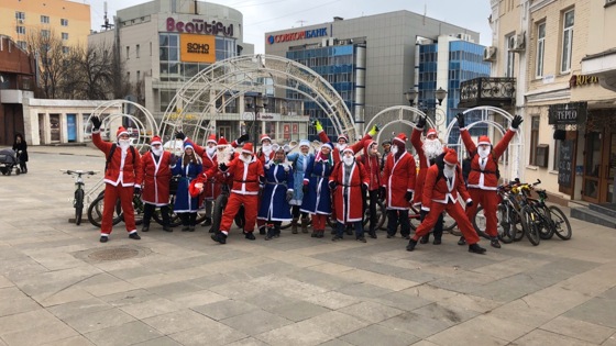 Накануне, 29 декабря, в центре Саратова можно было встретить банду Дедов Морозов и Снегурочек на велосипедах. Они не столько катались ради спортивного интереса, сколько дарили радость окружающим. Саратовцы в костюмах Дедов Морозов и Снегурочек, разъезжая на велосипедах, поздравляли горожан с наступающим Новым годом. Старт был дан в полдень от цирка. По пути следования участники акции раздавали прохожим конфеты и мандарины и принимали участие в спонтанных фотосессиях. Так прошёл очередной флэшмоб «Велодедмороженное». В отличие от прошлогодней акции, в этом году в ней захотели принять участие в разы больше людей, 21 сказочный персонаж. В этот раз раздали 11 килограммов сладостей. Одним из организаторов праздничного велопробега стал сотрудник областной службы спасения Александр Домбровский. Рассказывает, что идея проведения флешмоба появилась ещё несколько лет назад. Проводит её сообщество "Веловызов". Покупать конфеты и цитрусовые приходится за свой счет, поэтому любой помощи ребята были рады.