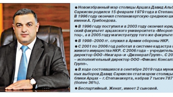 Интервью с мэром Степанакерта Давидом Саркисяном. Ашот Бегларян: Г-н Саркисян, позвольте от имени нашей газеты поздравить Вас с избранием на пост мэра столицы Арцаха и задать первый вопрос: каков был Ваш основной мотив выдвижения на пост главы администрации Степанакерта? Давид Саркисян: Спасибо за поздравление. В свою очередь я хочу поздравить вас, коллектив и читателей газеты «Ноев Ковчег» с Новым годом и Рождеством Христовым и пожелать, чтобы наступивший год был годом беспрецедентных успехов, новых достижений, добрых дел, любви и толерантности. Теперь отвечу на ваш вопрос. В течение всей своей сознательной жизни я постоянно общался со своими согражданами, был знаком с проблемами города, чувствовал в себе соответствующий потенциал для решения больших и малых проблем города. Считаю, что для решения многопластовых проблем мэр в первую очередь должен быть хорошим управленцем, а это качество у меня есть. В этом причина того, что я решил быть полезным своему городу и народу. Ашот Бегларян: Расскажите, пожалуйста, о распорядке Вашего рабочего дня. Давид Саркисян: Мой рабочий день начинается не в 9:00, а раньше, примерно в 8:15. Начинаю с обхода города с тем, чтобы своими глазами увидеть проблемы, а также на месте изучить поднятые накануне спорные вопросы. Надо сказать, что по сей день все подобные вопросы получили решение на месте. Затем я прихожу в свой рабочий кабинет, выпиваю чашку кофе и приступаю к очень плотному рабочему графику: совещания, прием граждан, детальная проработка новых идей и программ, выполнение текущей работы. Может показаться необычным, но со времени вступления в должность я ни разу не ходил на обеденный перерыв — ограничиваюсь кофейными паузами в работе. А в целом каждый рабочий день разный. Неизменен только обход города ранним утром. Ашот Бегларян: Что Вы успели сделать за 100 дней пребывания на посту мэра? Что нового планируете привнести в работу городской администрации? Давид Саркисян: Я вступил в должность в конце года, когда бюджет мэрии был почти исчерпан, однако, несмотря на это, проделано немало работы, и что самое важное — все осуществлено прозрачно. Каждую пятницу горожане могут ознакомиться на странице мэрии в фейсбуке с выполненной за неделю работой. Кстати, создание в фейсбуке страницы было одной из первых наших инициатив с целью, как я обещал, в прозрачном режиме и совместными усилиями благоустраивать и развивать наш город. Не стану перечислять все, что мы успели сделать, представлю в общем виде. Начну с того, что проведены работы по благоустройству, санитарной очистке и восстановлению в окрестностях прозванного жителями «Три крана» родника, и он обрел новое дыхание. Освещен ряд кварталов города («Ареш», «Туманян», «Маштоц» и др.), асфальтированы некоторые дороги, на различных участках города осуществлены работы по саночистке, отремонтированы крыши нескольких зданий, квартиры и дома, обеспечена работа общественного транспорта на окраинных улицах. Также пересмотрены тарифы на определенные услуги и арендная плата за имущество, являющееся собственностью общины, то есть принято решение об уменьшении размеров некоторых местных пошлин и платежей. Можно долго продолжать, но в целом хочу отметить, что мы непрерывно работаем в направлении укрепления непосредственной связи «гражданин — мэрия». Это очень 