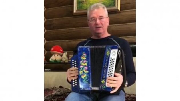 Иван Белозерцев сыграл на гармони песню военных лет