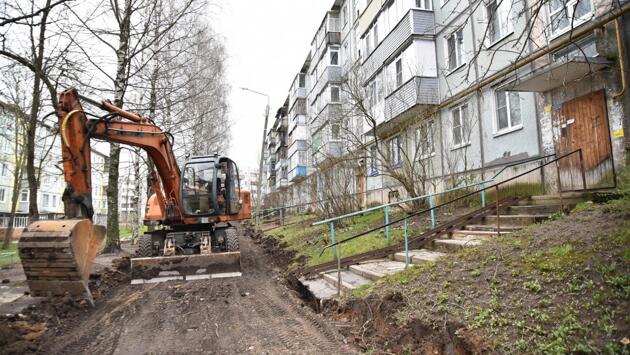 Ремонтные работы начались во дворе дома на ул. Дзержинского, 33 в Вологде